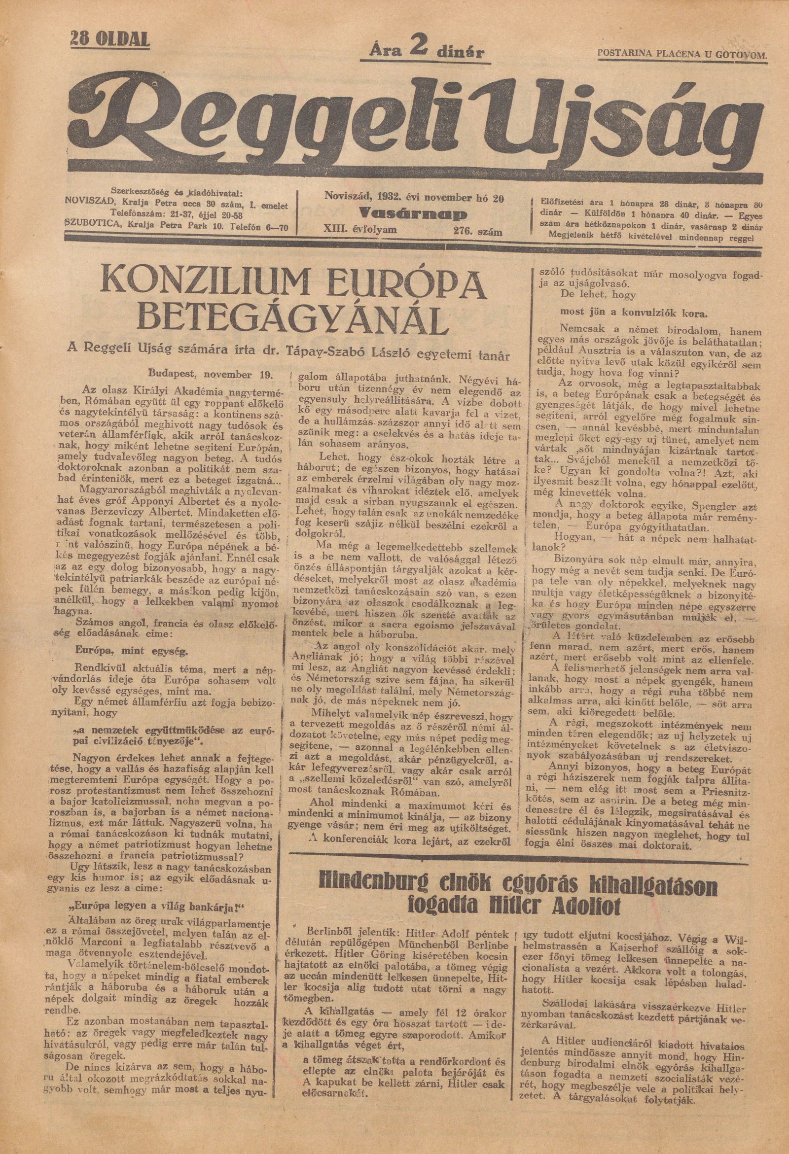 Reggeli Újság, 13. évf. 1932. november 20. 276. sz.