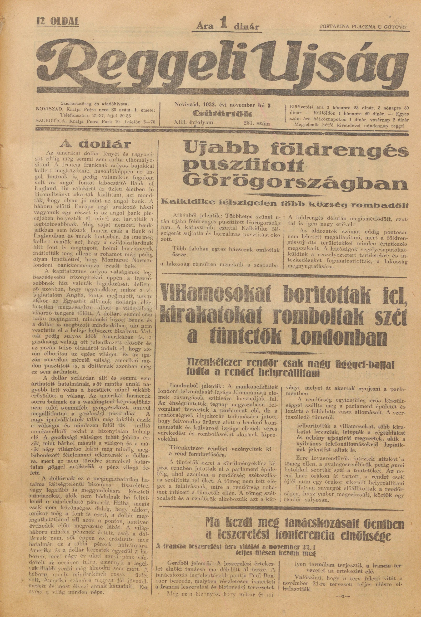 Reggeli Újság, 13. évf. 1932. november 3. 261. sz.