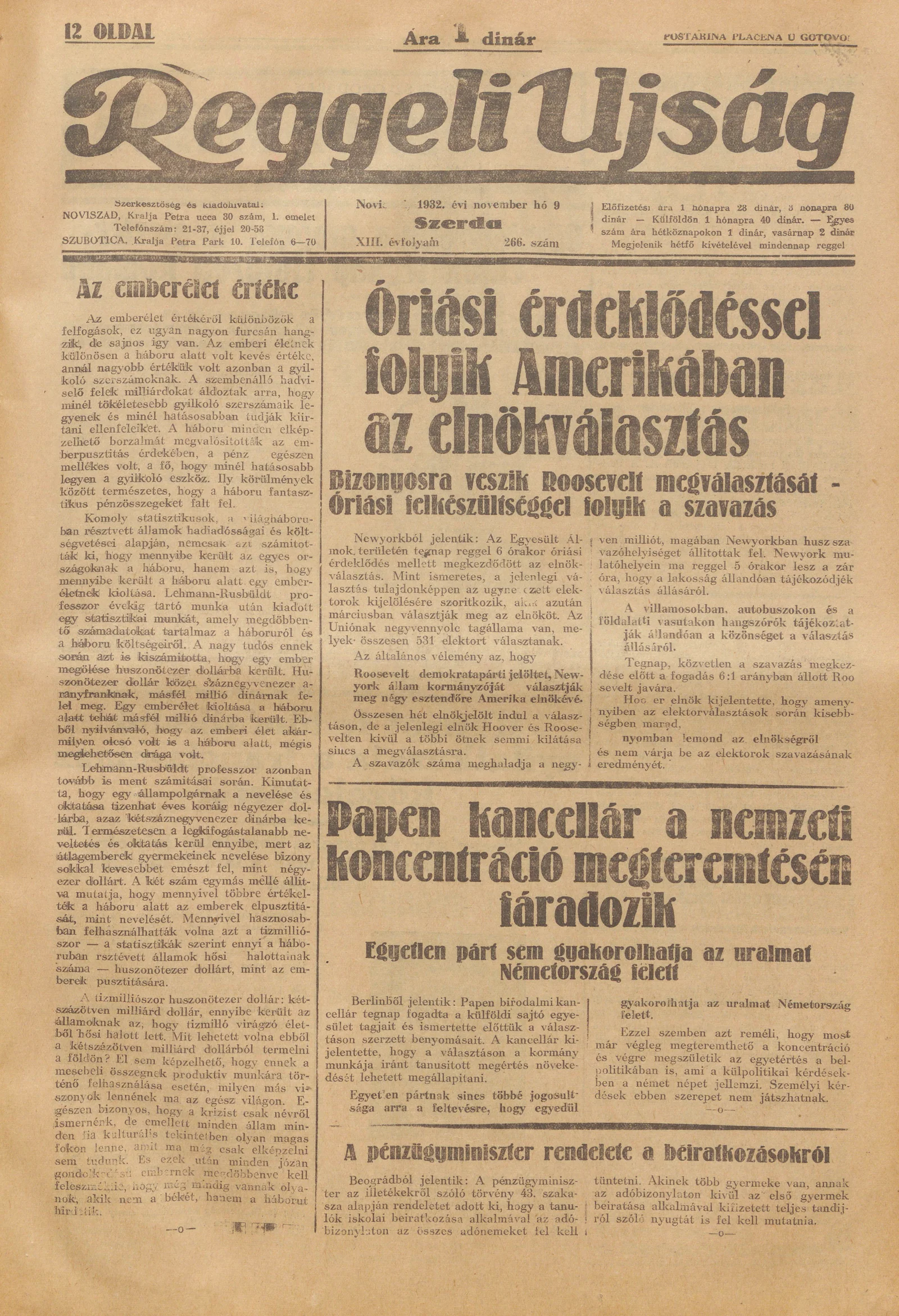 Reggeli Újság, 13. évf. 1932. november 9. 266. sz.
