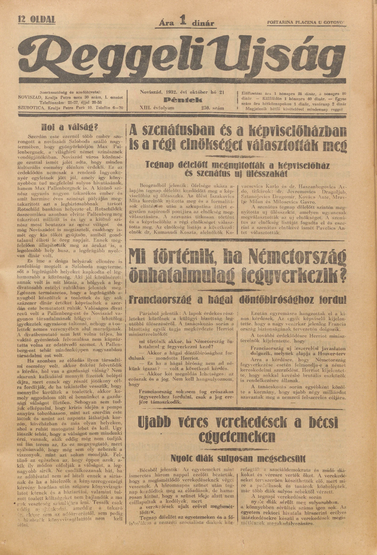 Reggeli Újság, 13. évf. 1932. október 21. 250. sz.