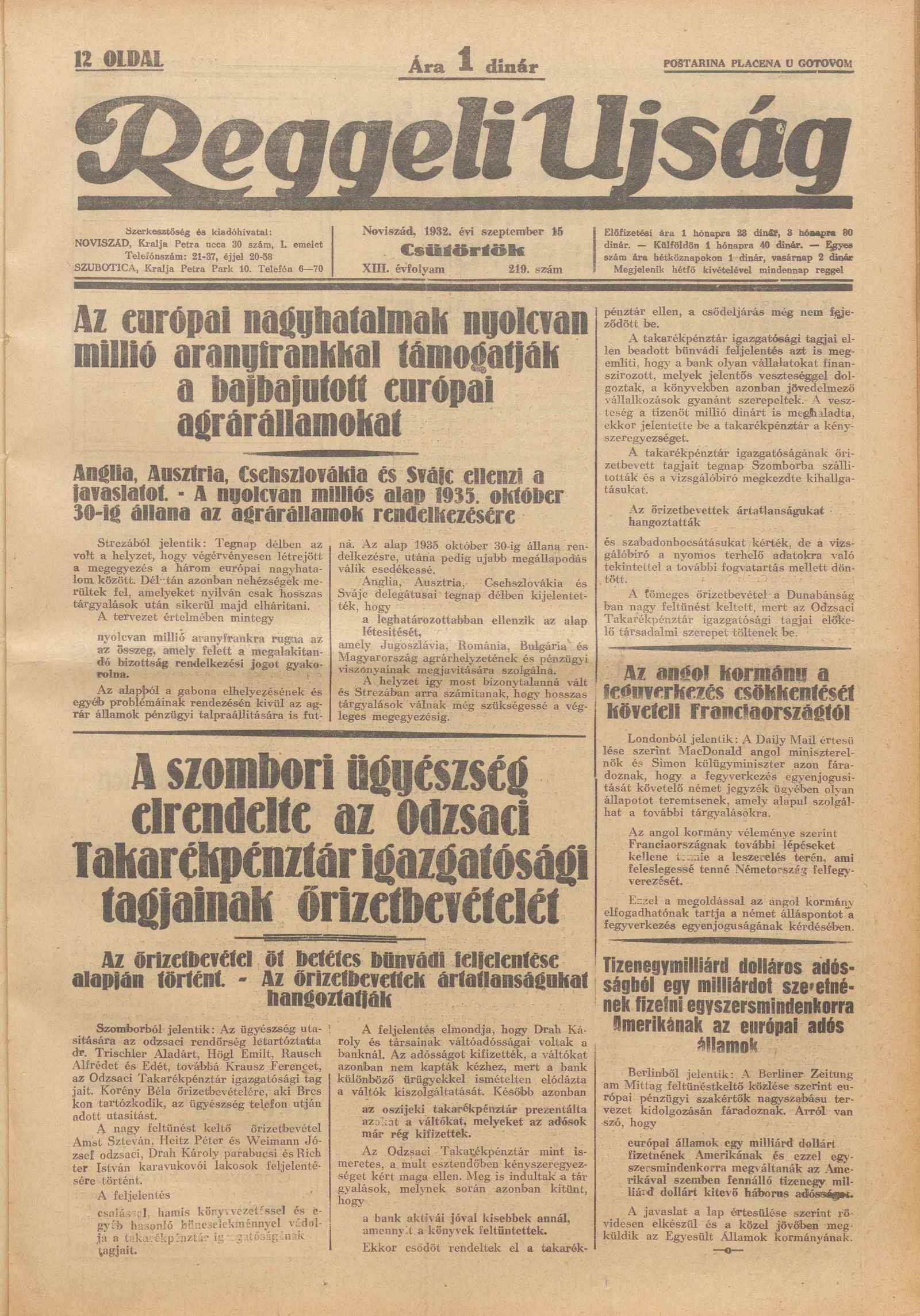 Reggeli Újság, 13. évf. 1932. szeptember 15. 219. sz.