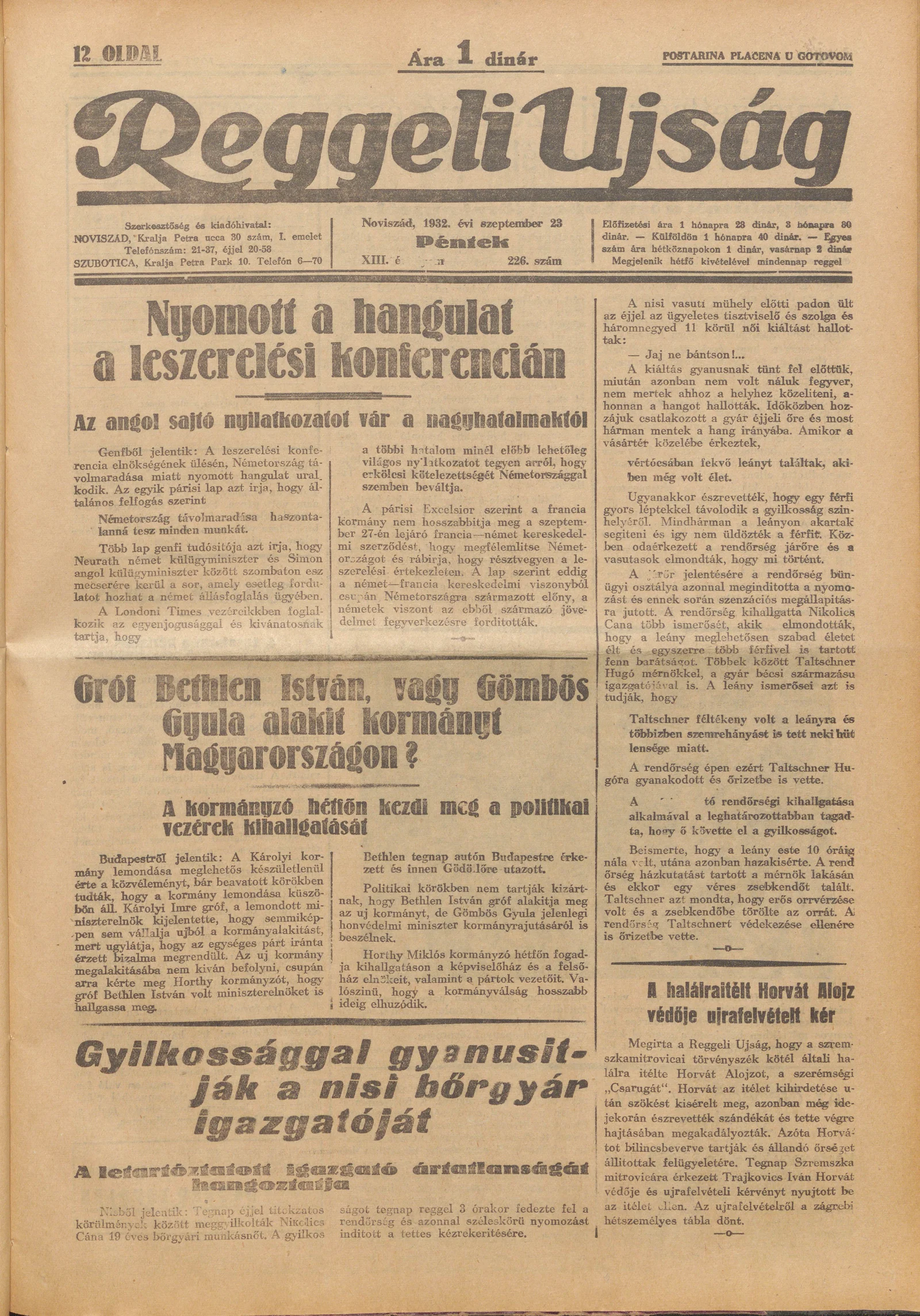 Reggeli Újság, 13. évf. 1932. szeptember 23. 226. sz.