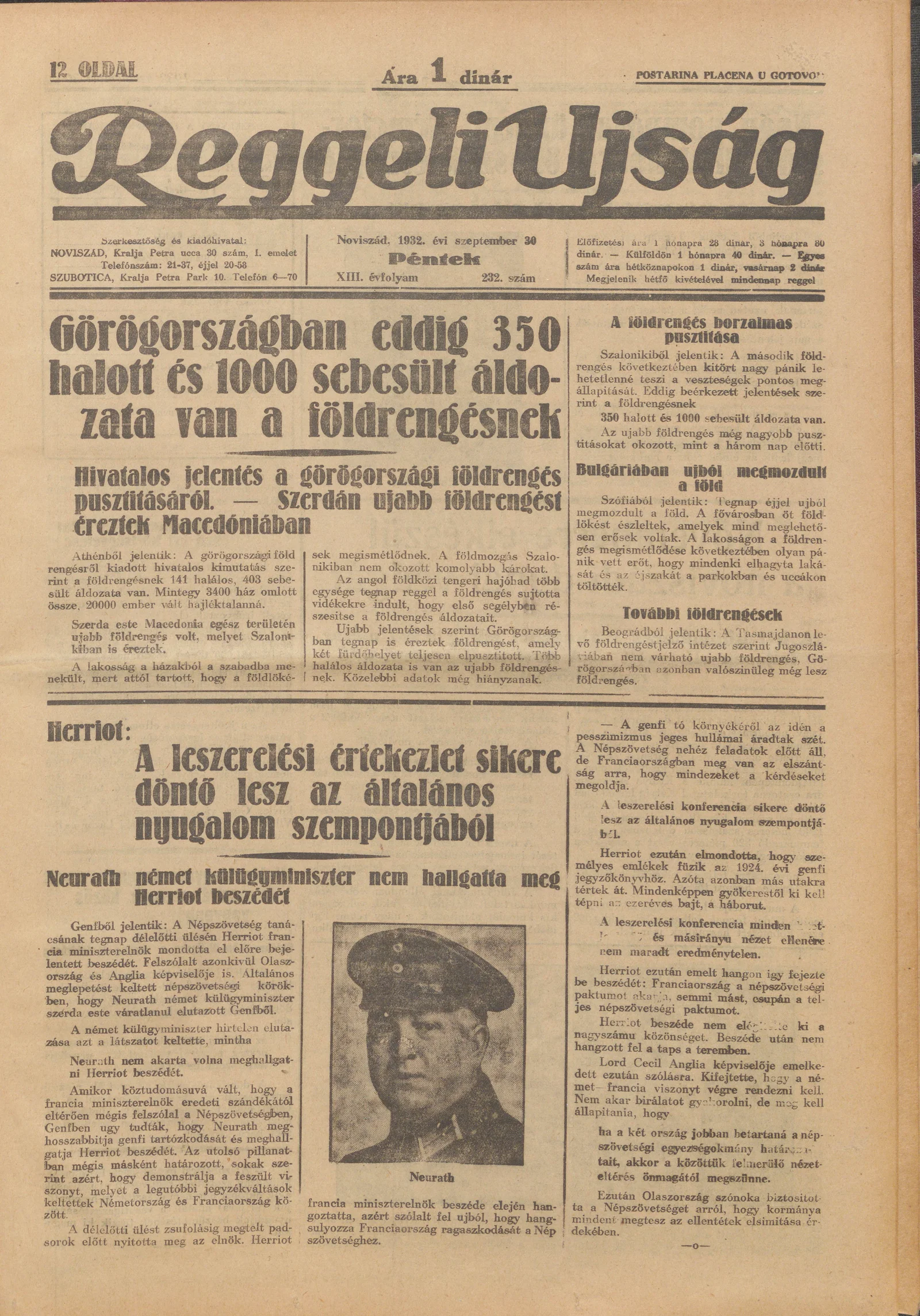 Reggeli Újság, 13. évf. 1932. szeptember 30. 232. sz.