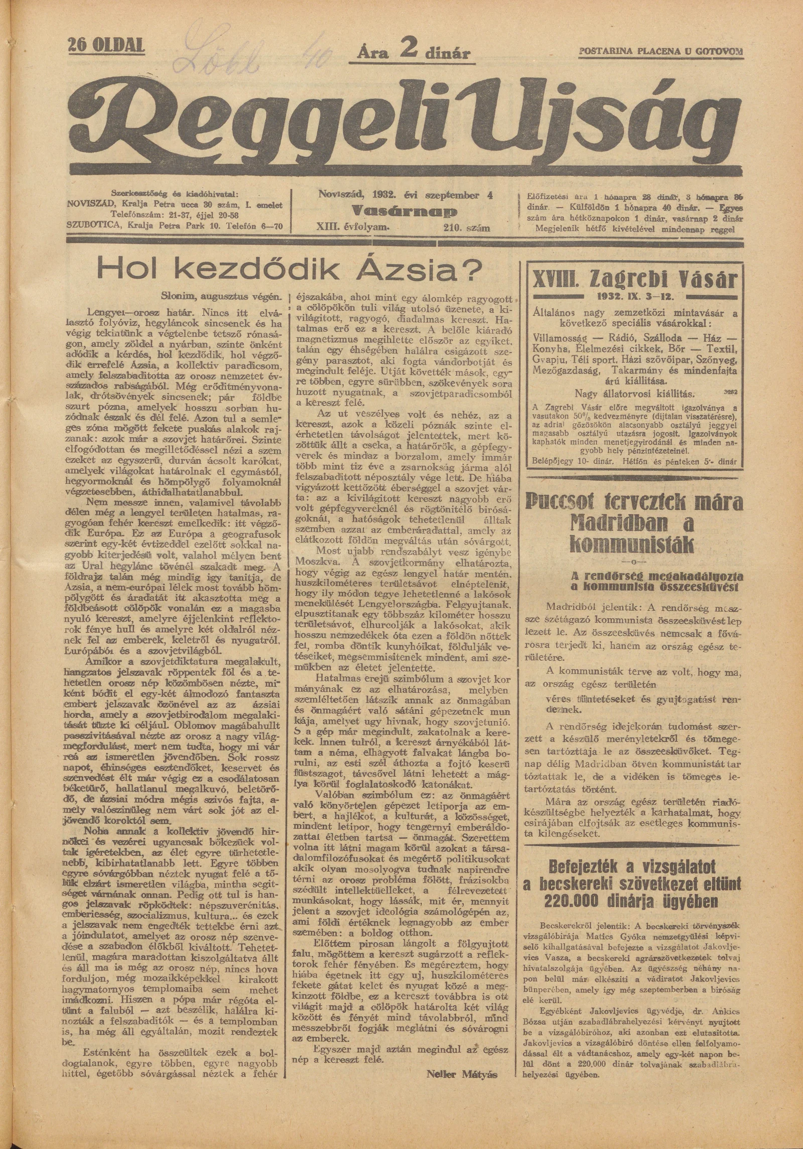 Reggeli Újság, 13. évf. 1932. szeptember 4. 210. sz.