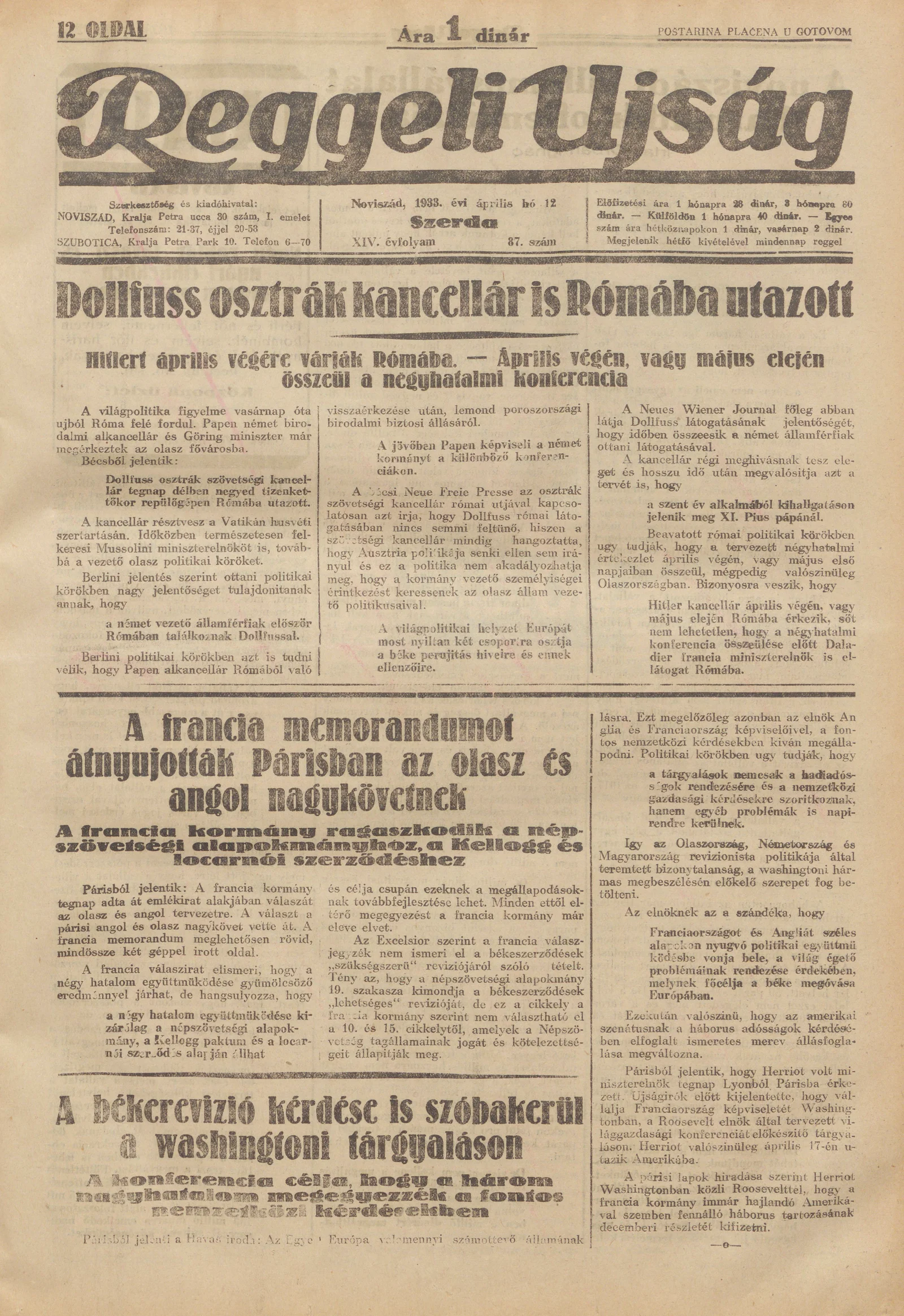 Reggeli Újság, 14. évf. 1933. április 15. 90. sz.