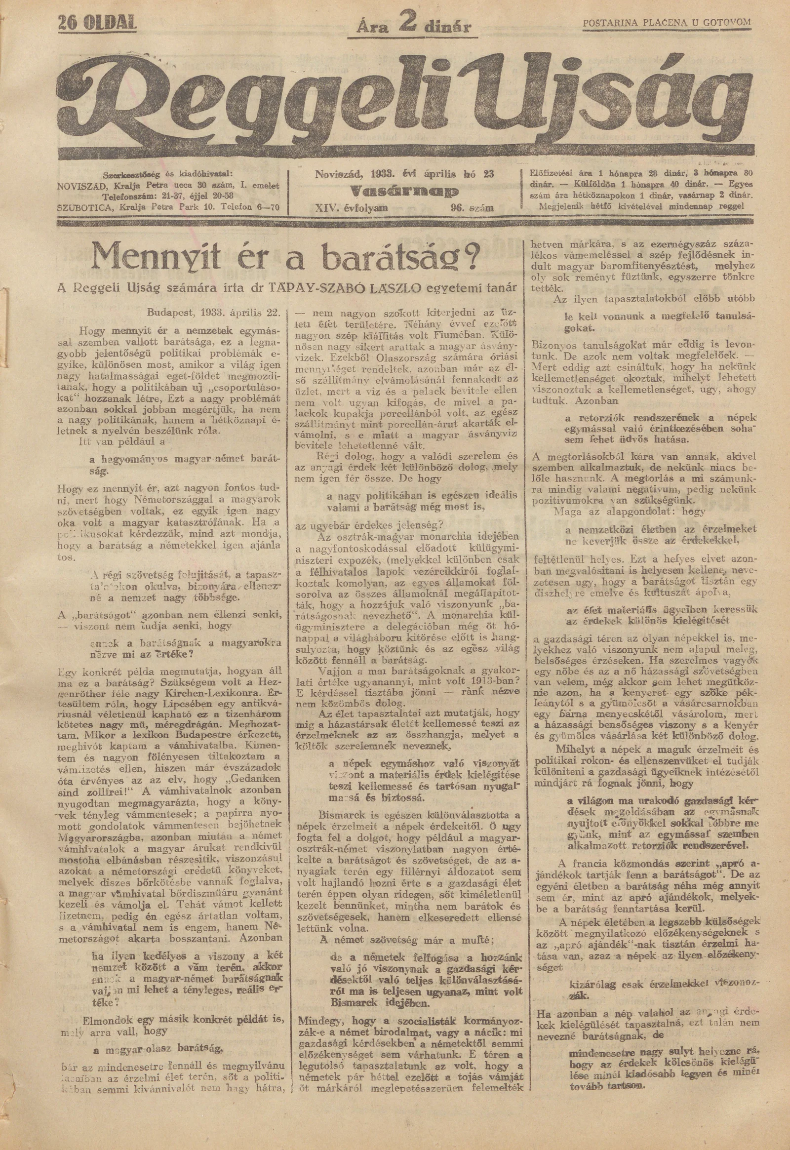 Reggeli Újság, 14. évf. 1933. április 27. 99. sz.