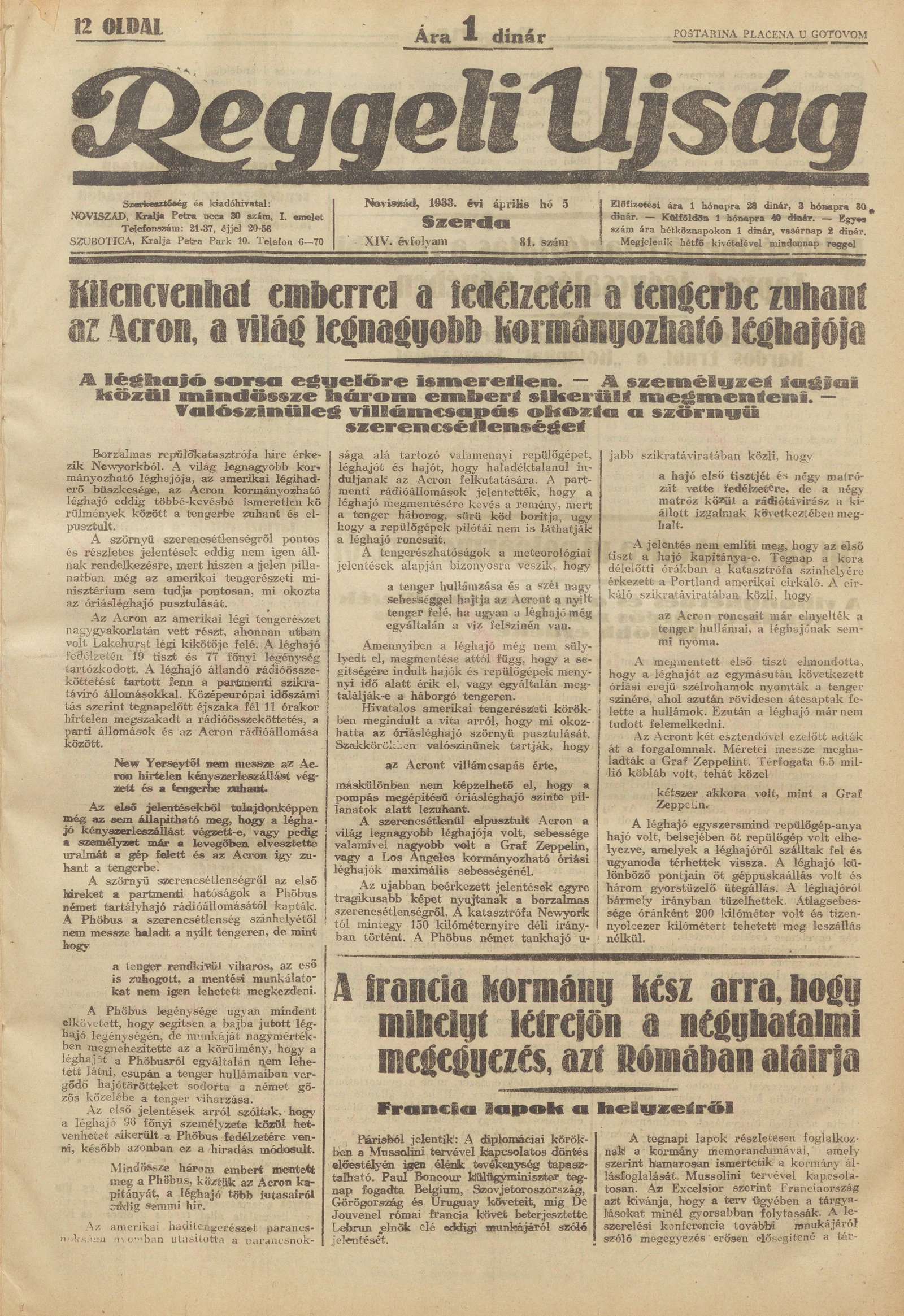 Reggeli Újság, 14. évf. 1933. április 8. 84. sz.