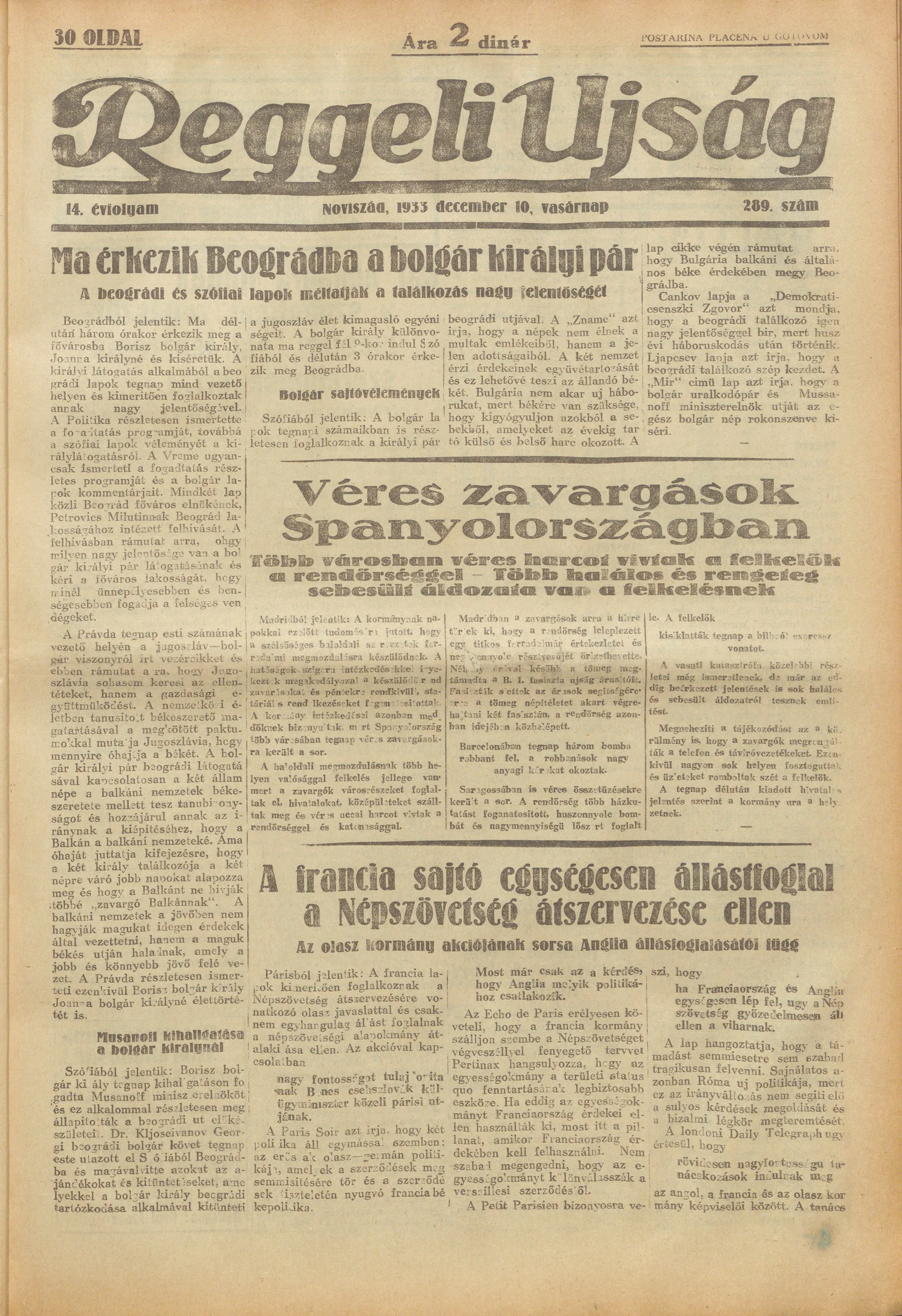 Reggeli Újság, 14. évf. 1933. december 10. 289. sz.