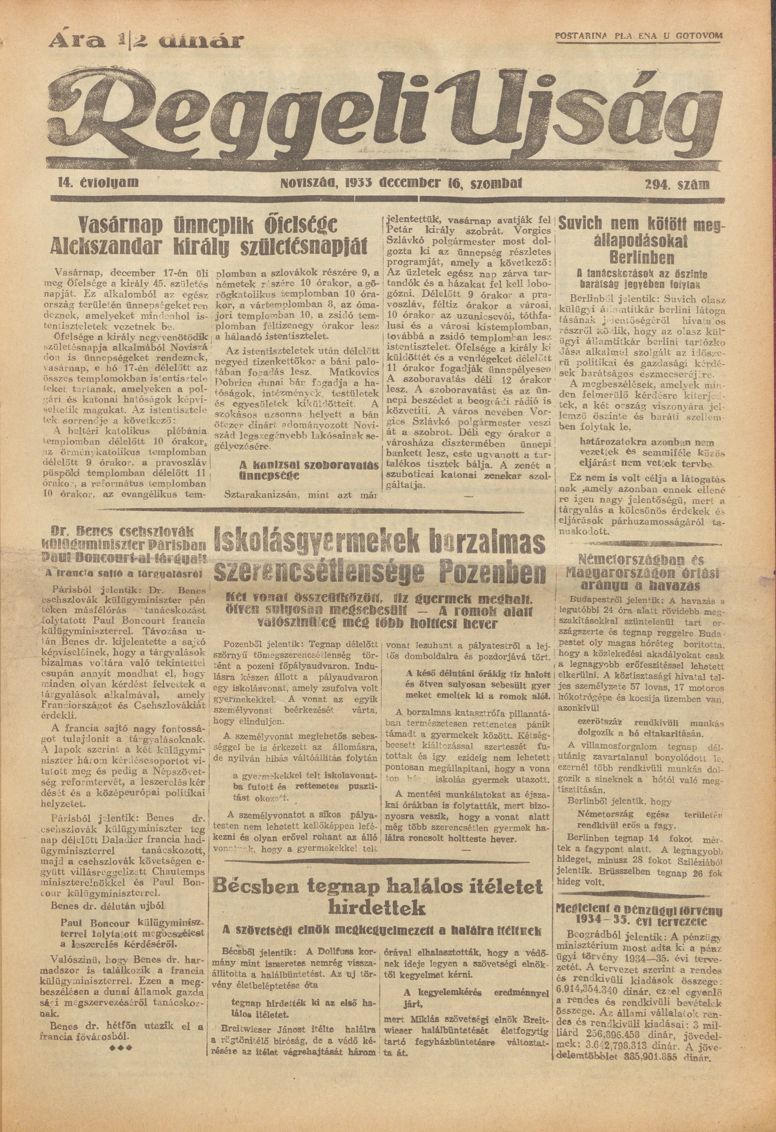 Reggeli Újság, 14. évf. 1933. december 16. 294. sz.