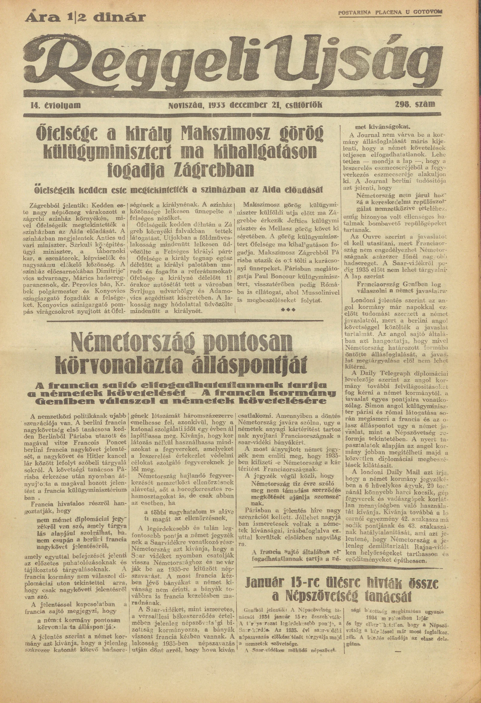Reggeli Újság, 14. évf. 1933. december 21. 298. sz.
