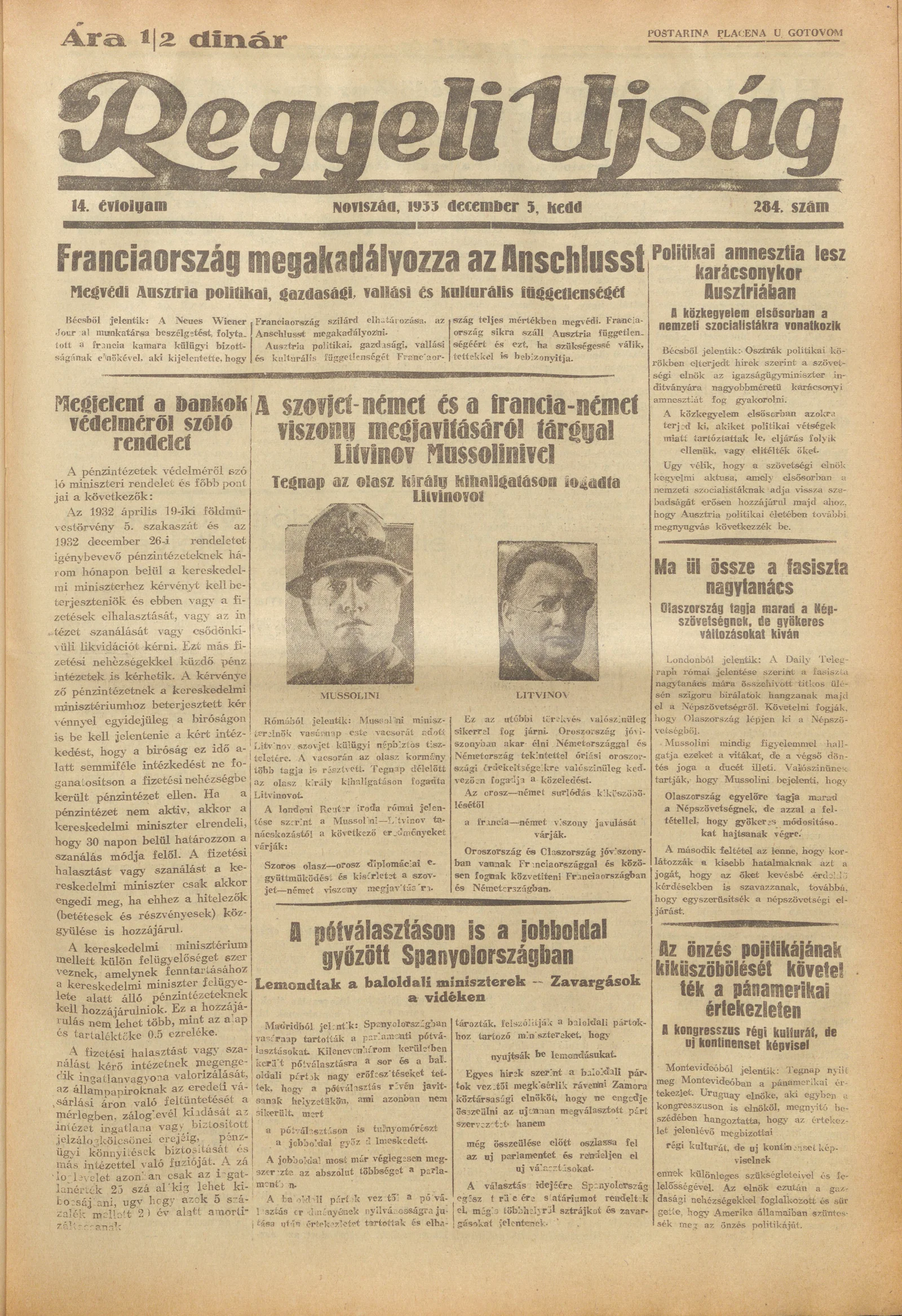 Reggeli Újság, 14. évf. 1933. december 5. 284. sz.