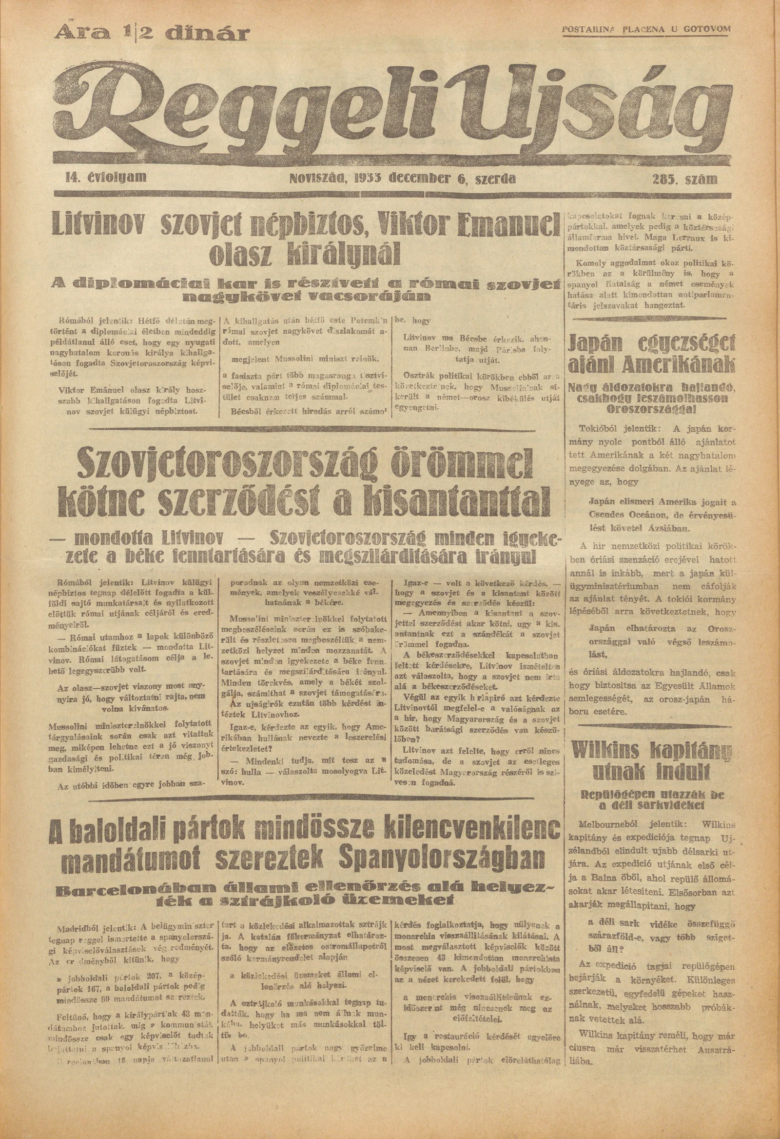 Reggeli Újság, 14. évf. 1933. december 6. 285. sz.