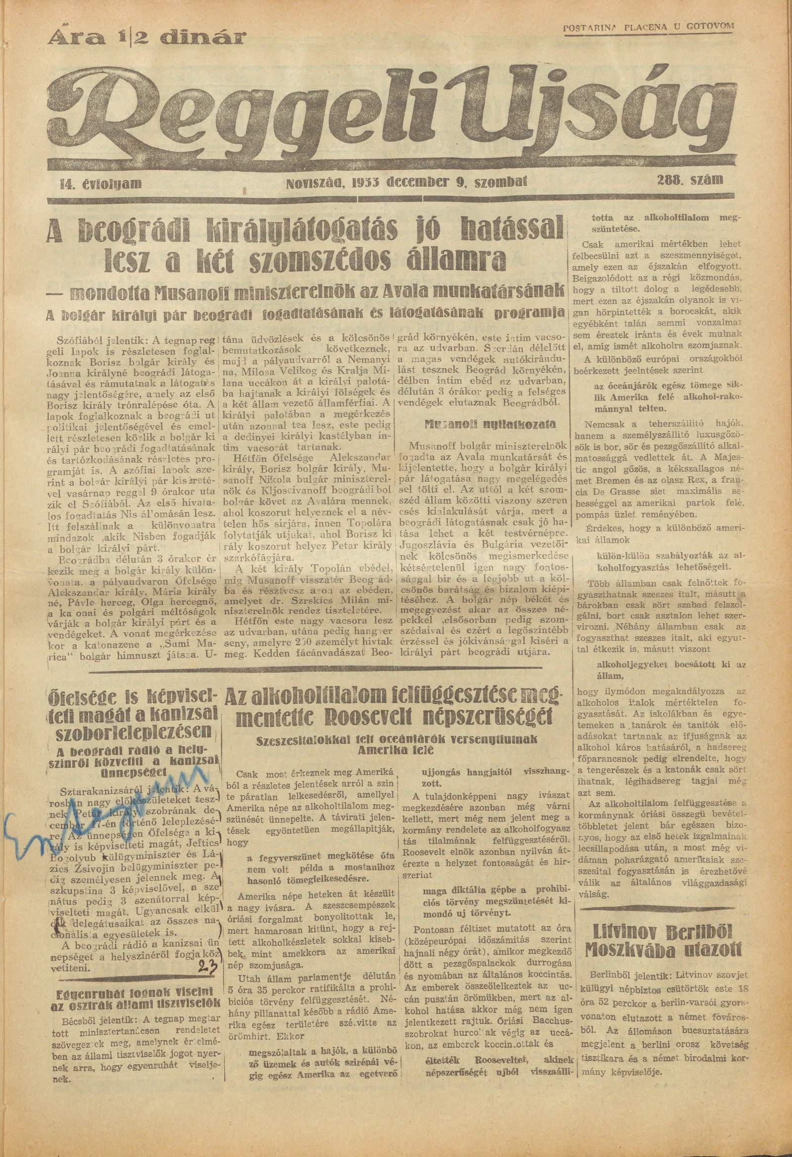 Reggeli Újság, 14. évf. 1933. december 9. 288. sz.