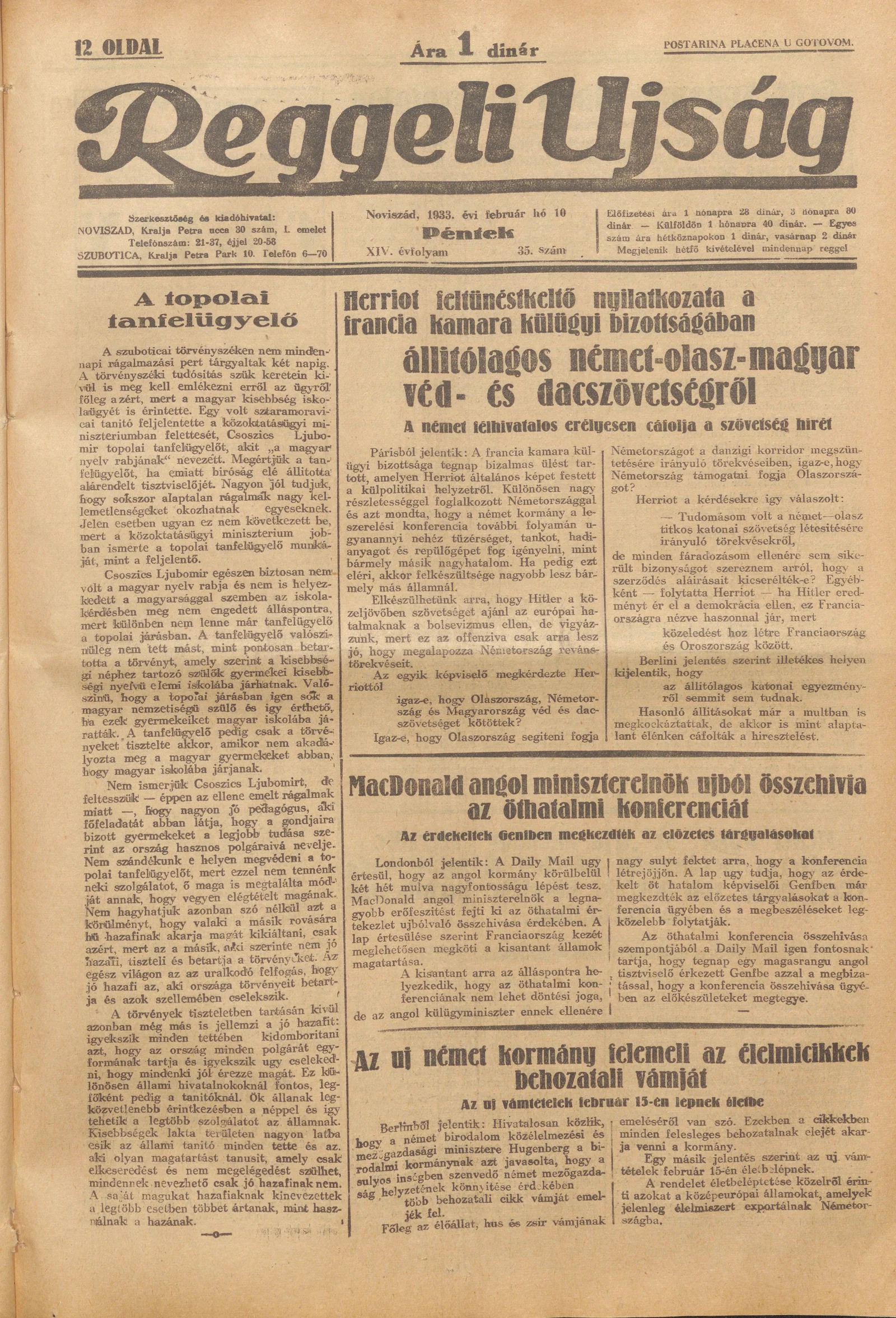 Reggeli Újság, 14. évf. 1933. február 10. 35. sz.