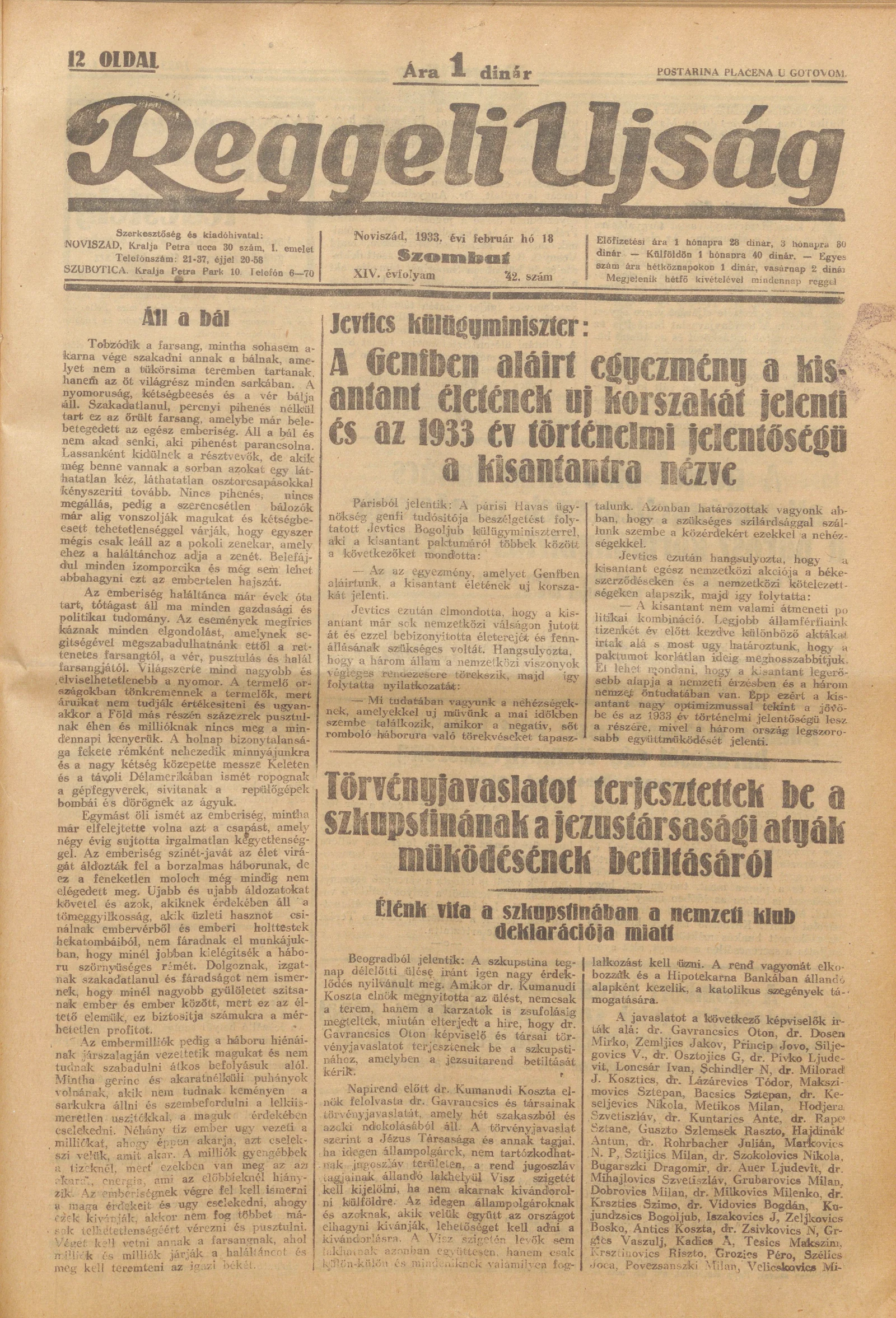 Reggeli Újság, 14. évf. 1933. február 18. 42. sz.