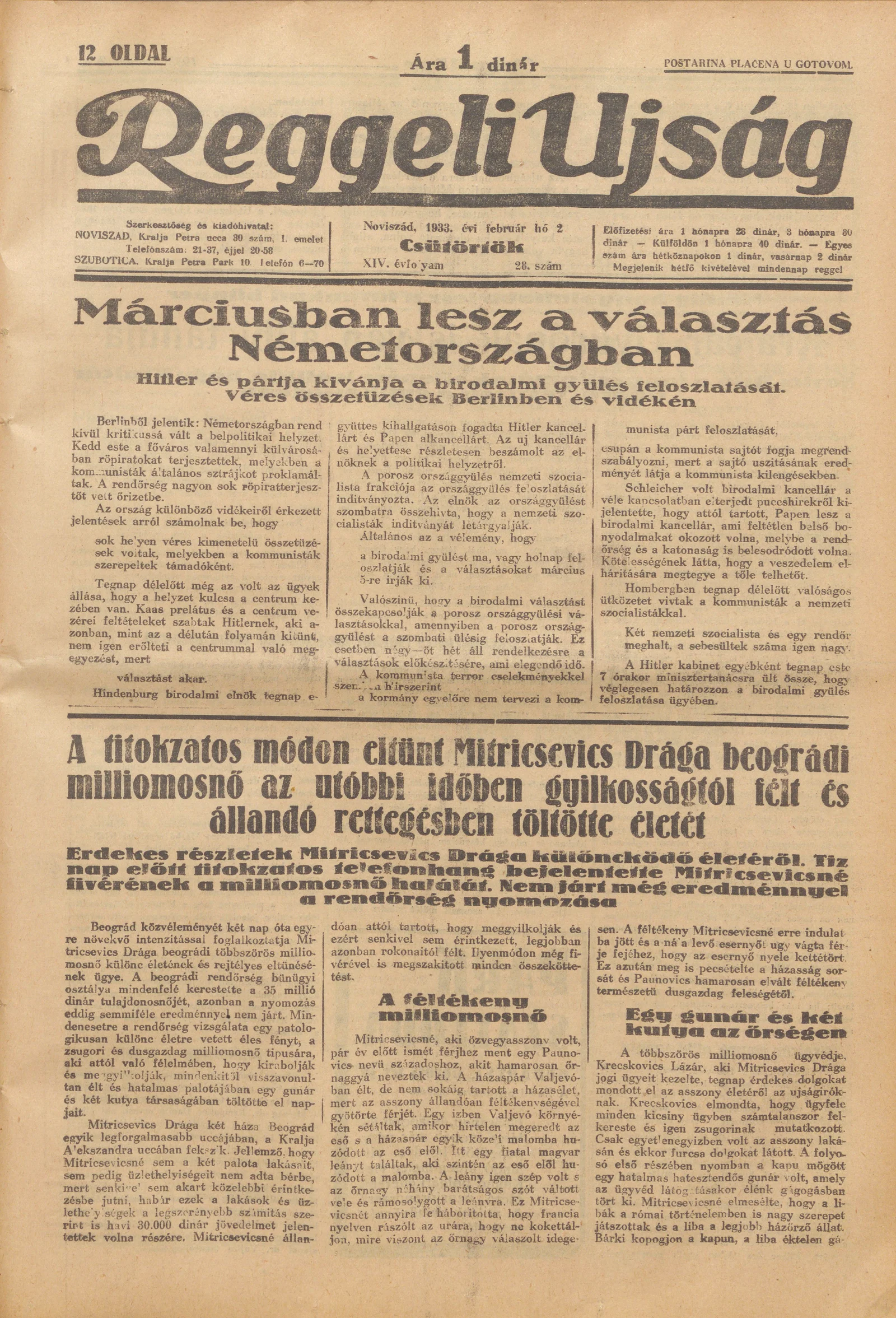 Reggeli Újság, 14. évf. 1933. február 2. 28. sz.