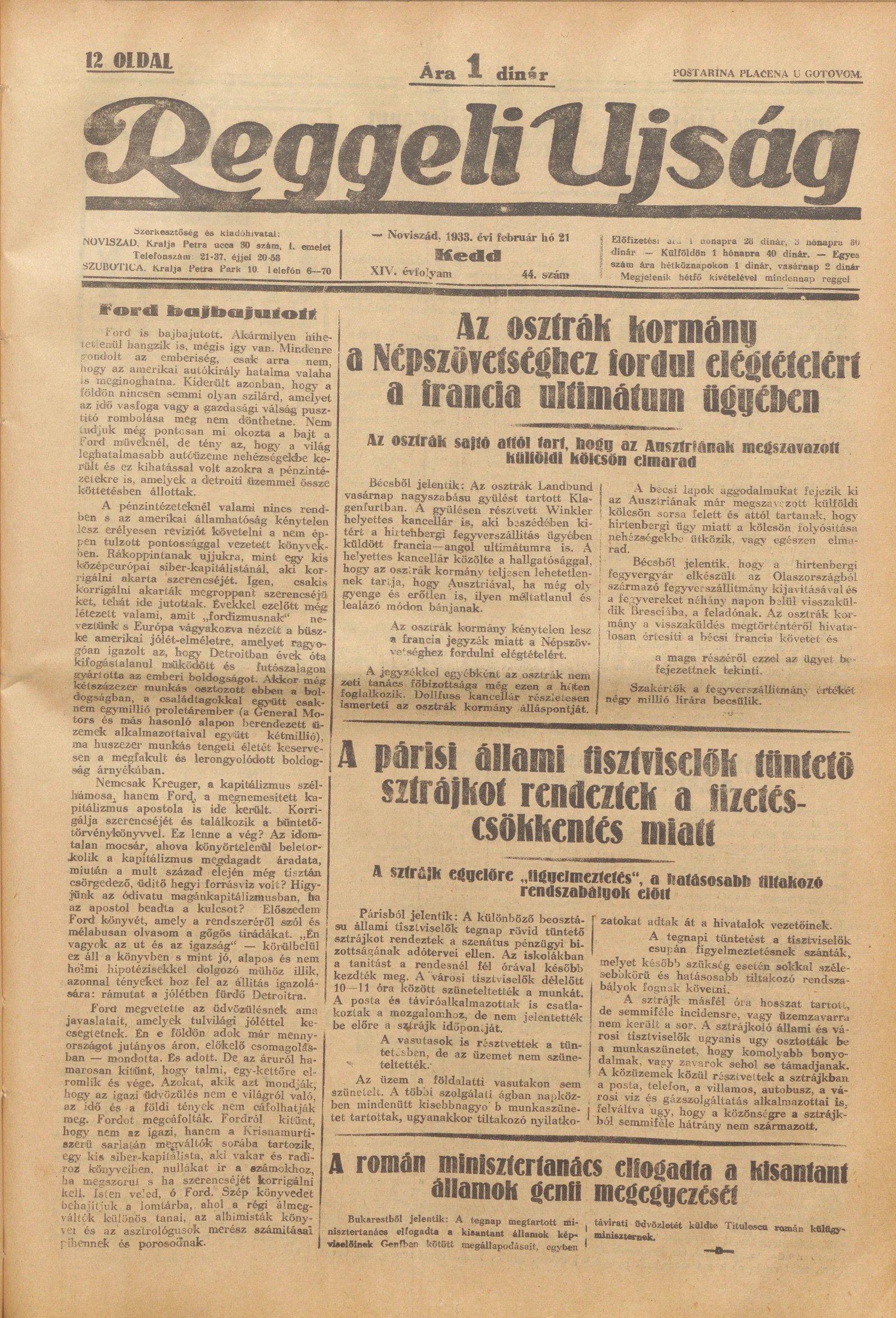 Reggeli Újság, 14. évf. 1933. február 21. 44. sz.