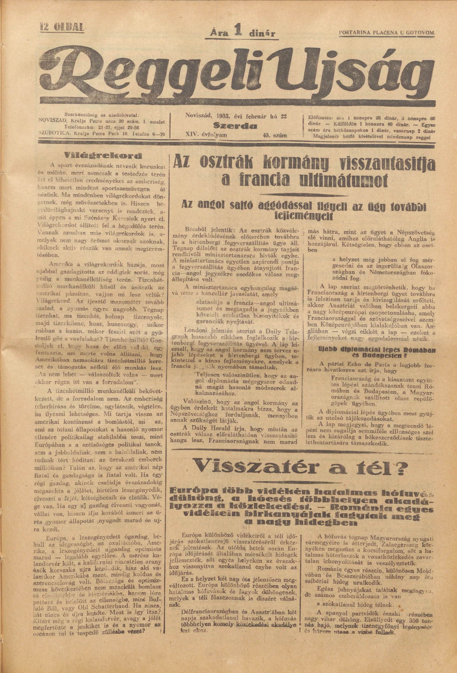 Reggeli Újság, 14. évf. 1933. február 22. 45. sz.