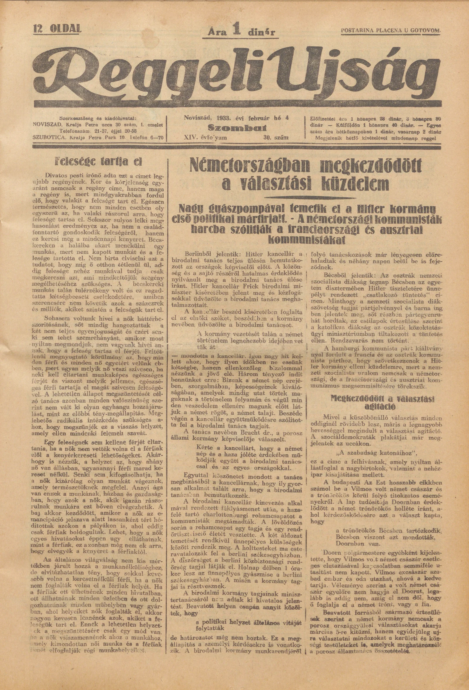 Reggeli Újság, 14. évf. 1933. február 4. 30. sz.