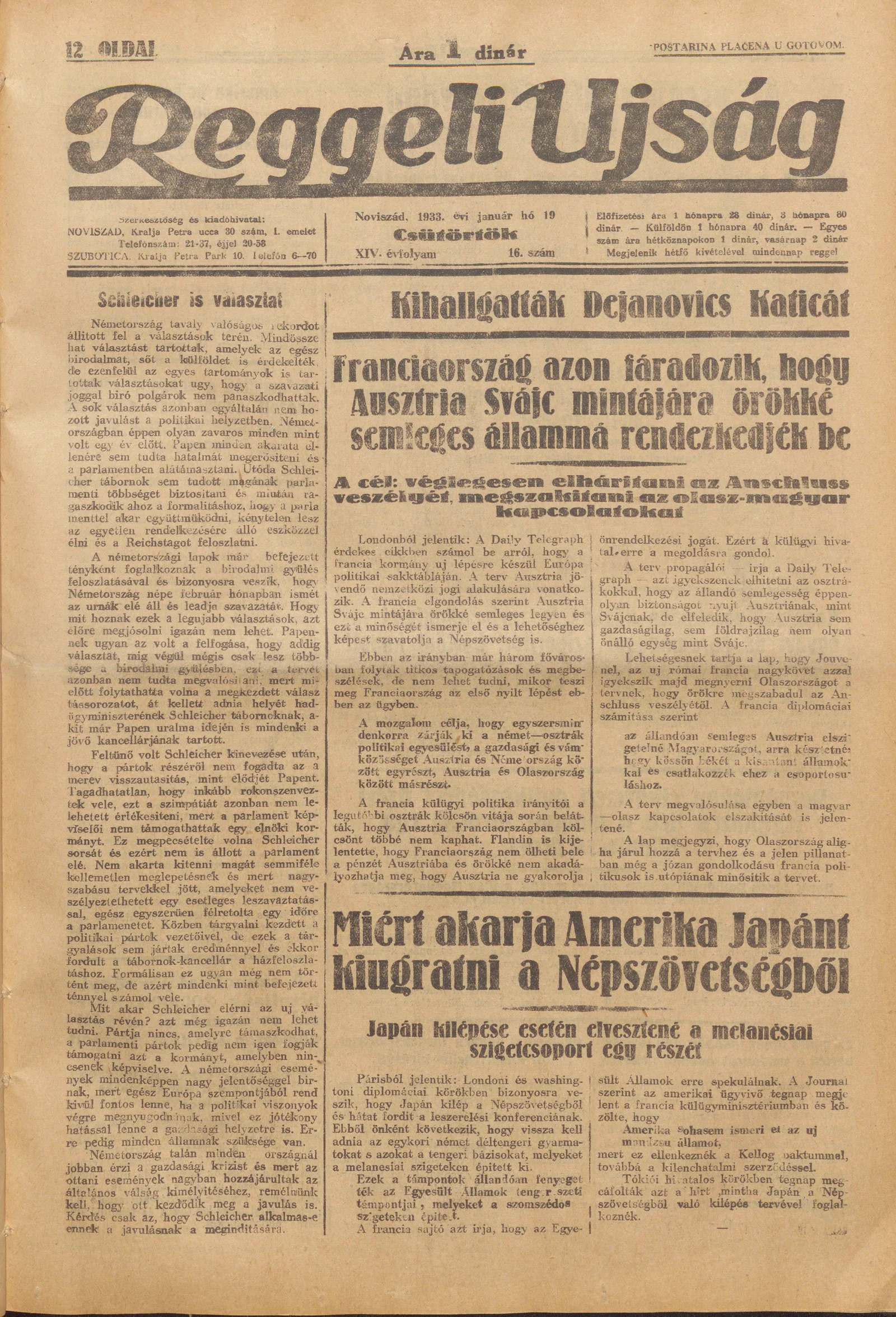 Reggeli Újság, 14. évf. 1933. január 19. 16. sz.