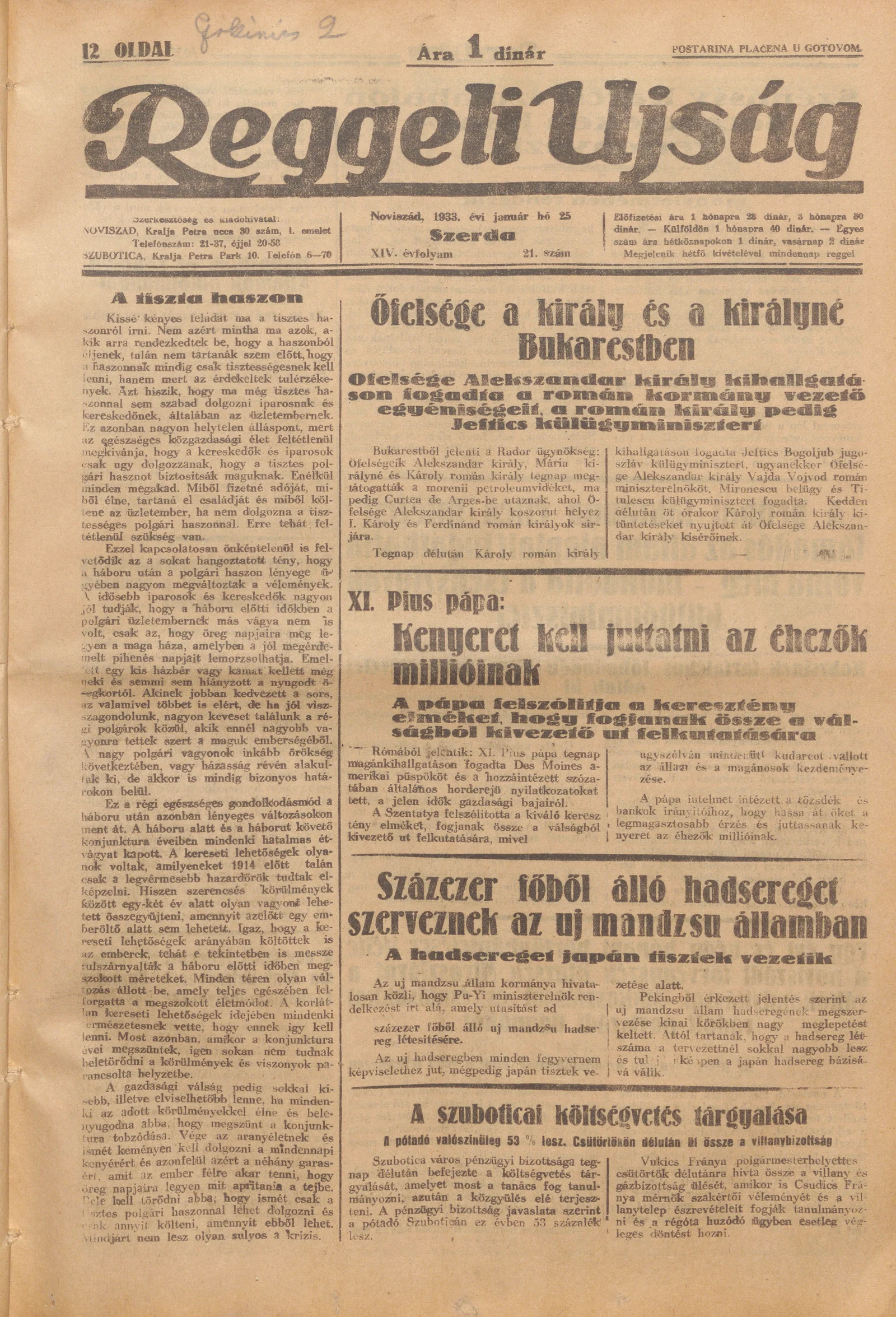 Reggeli Újság, 14. évf. 1933. január 25. 21. sz.