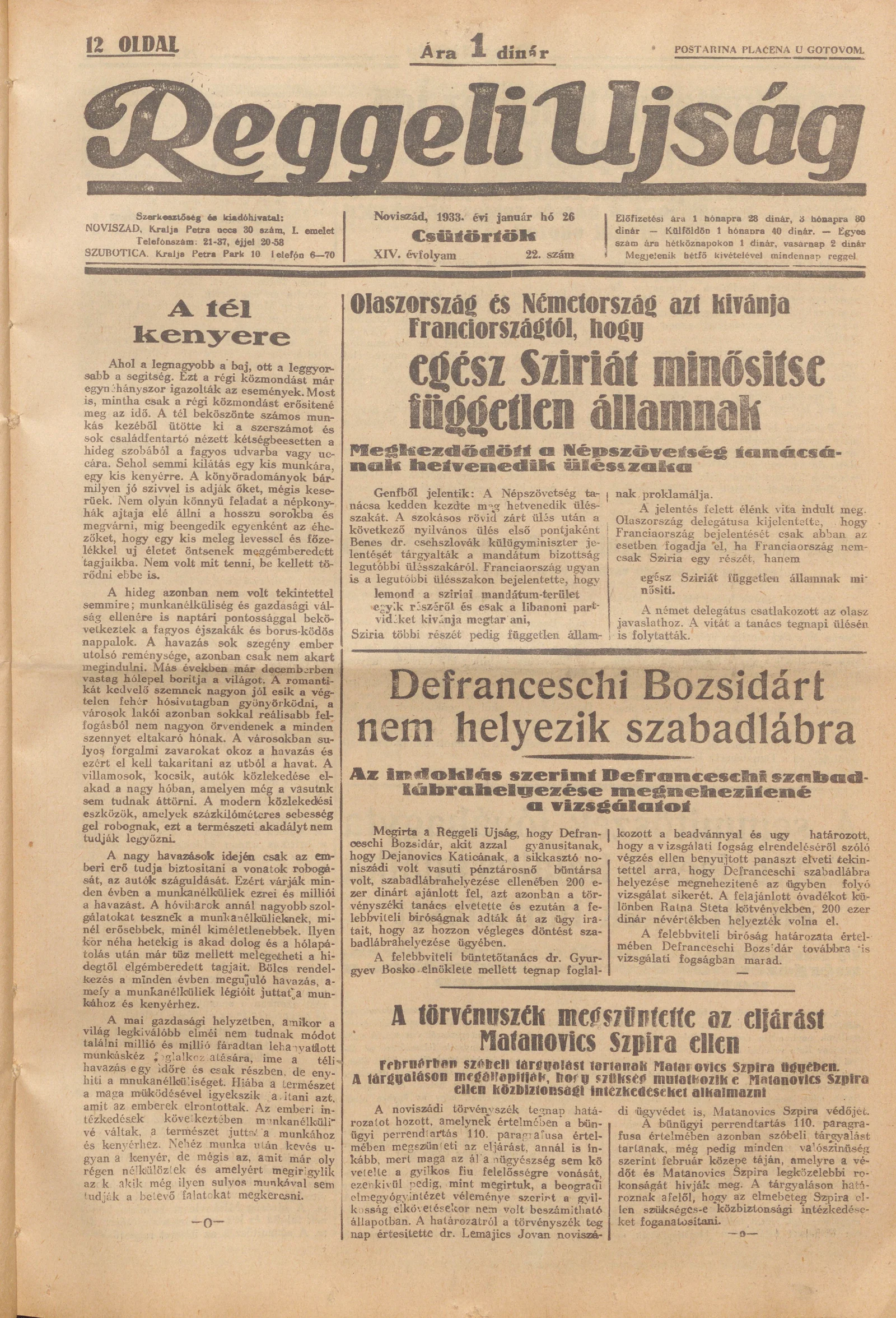 Reggeli Újság, 14. évf. 1933. január 26. 22. sz.