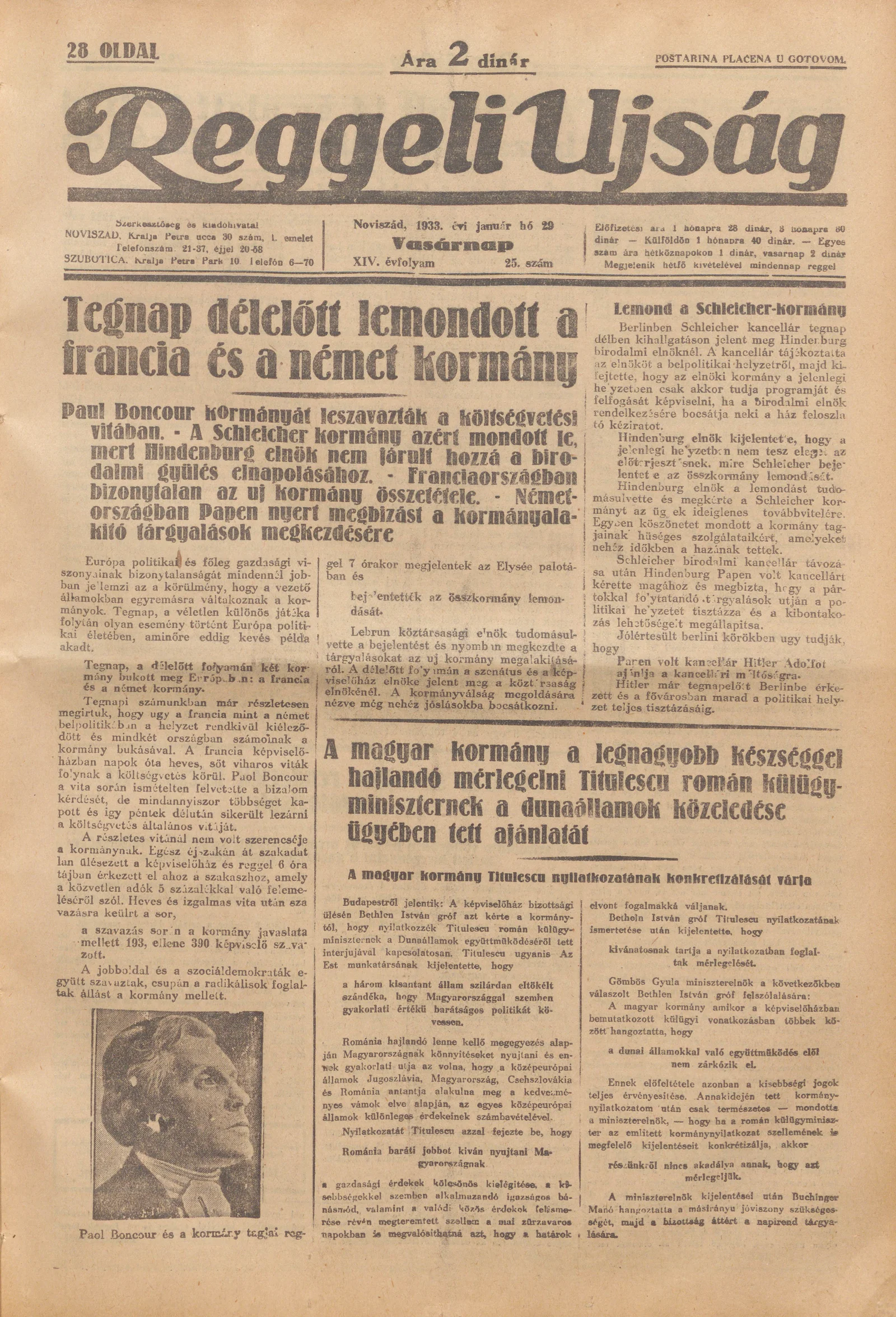Reggeli Újság, 14. évf. 1933. január 29. 25. sz.