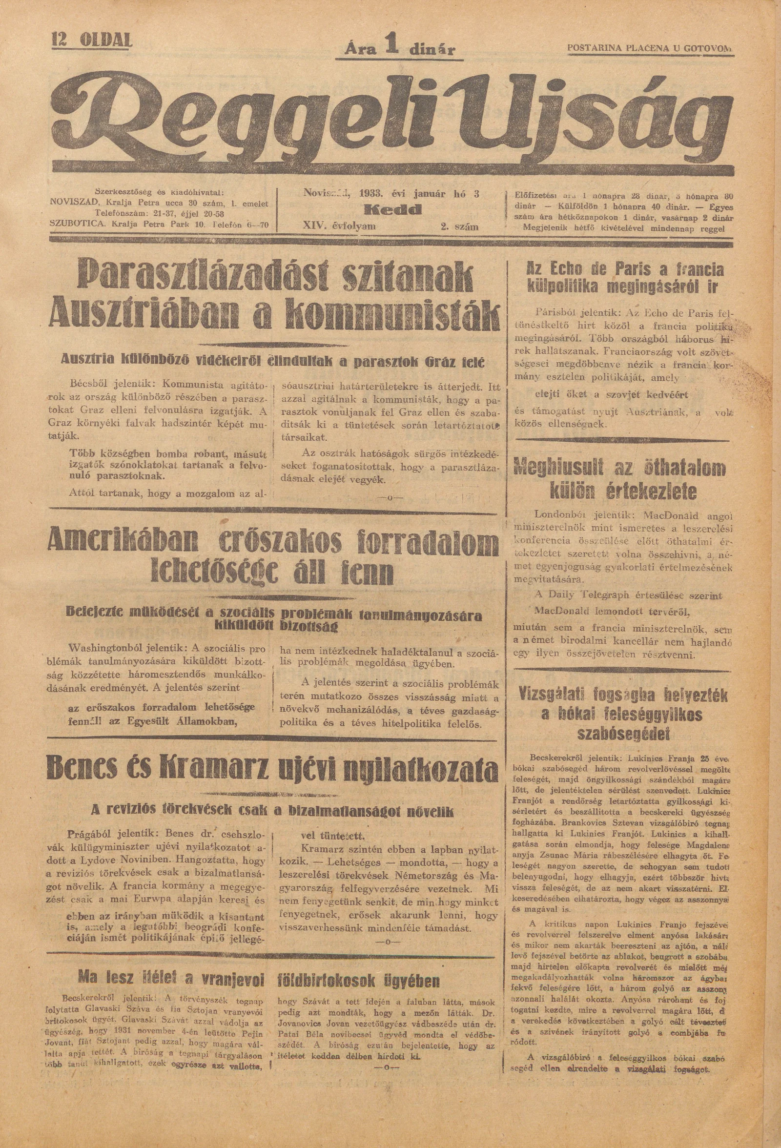 Reggeli Újság, 14. évf. 1933. január 3. 2. sz.
