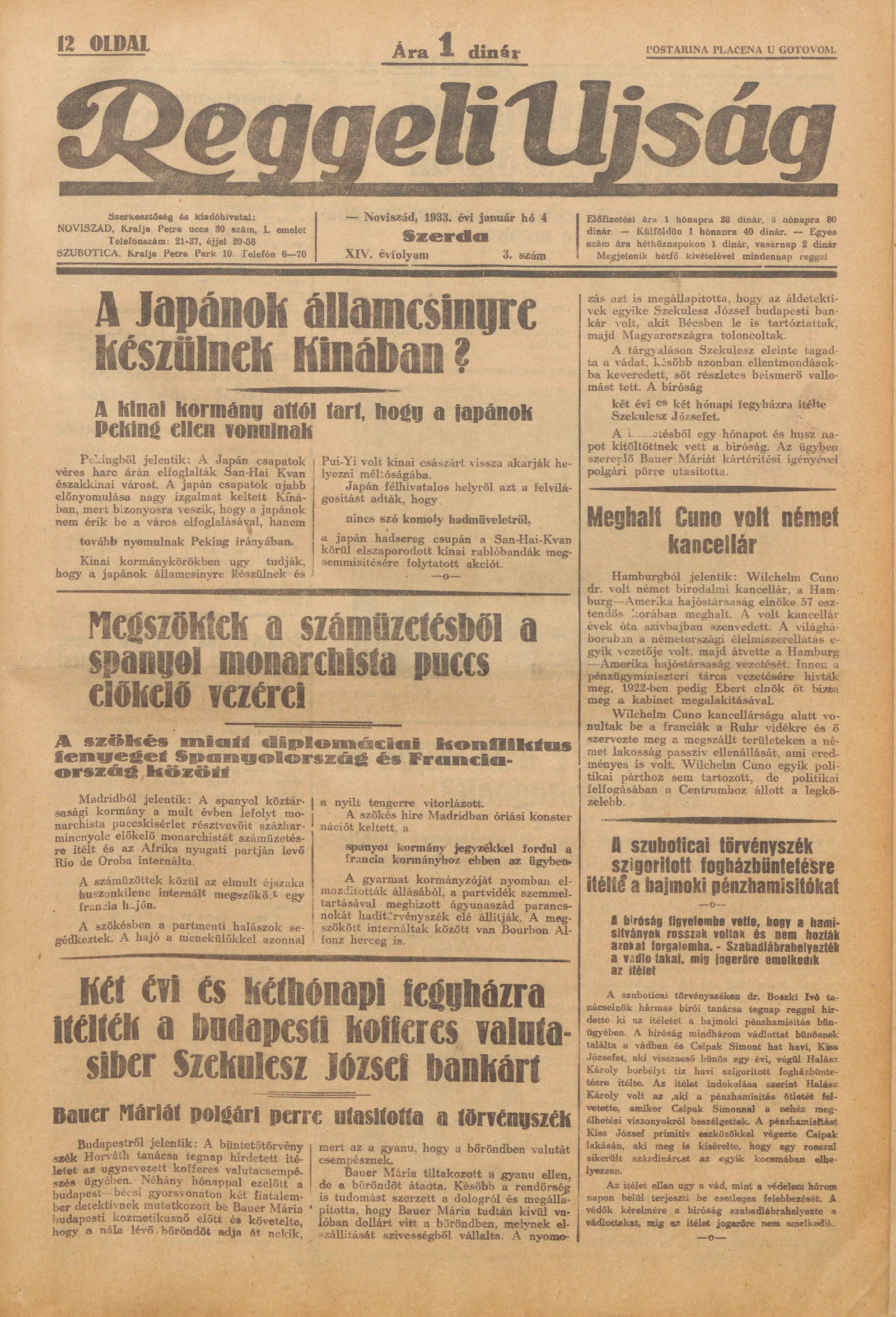 Reggeli Újság, 14. évf. 1933. január 4. 3. sz.