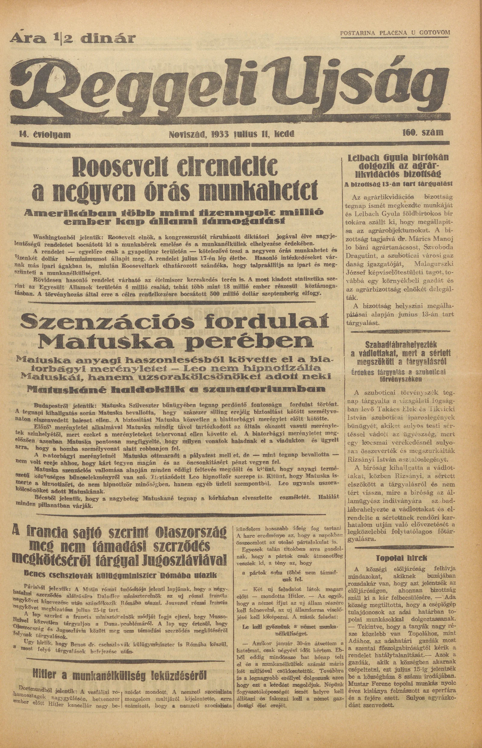 Reggeli Újság, 14. évf. 1933. július 11. 160. sz.