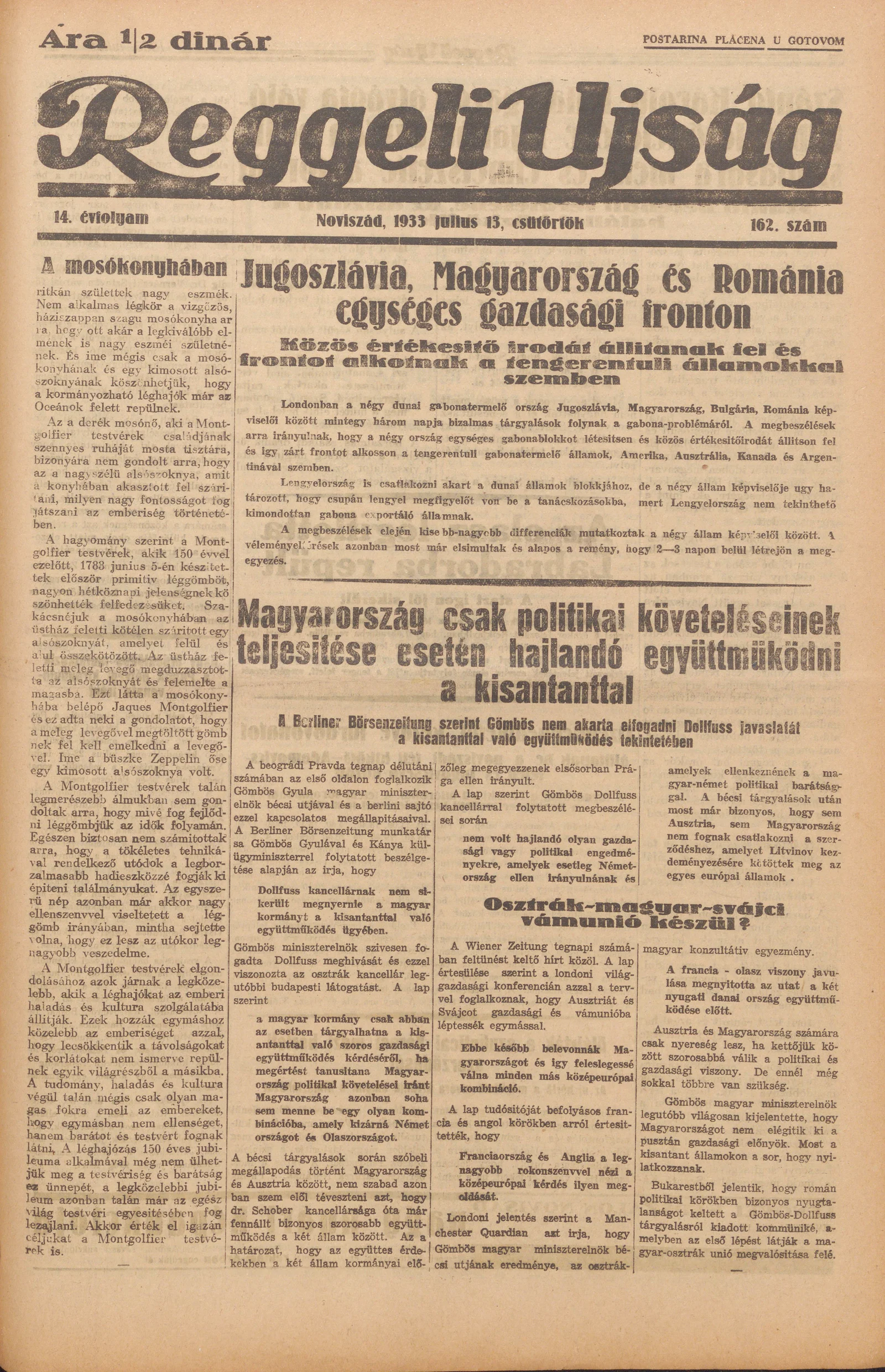 Reggeli Újság, 14. évf. 1933. július 13. 162. sz.