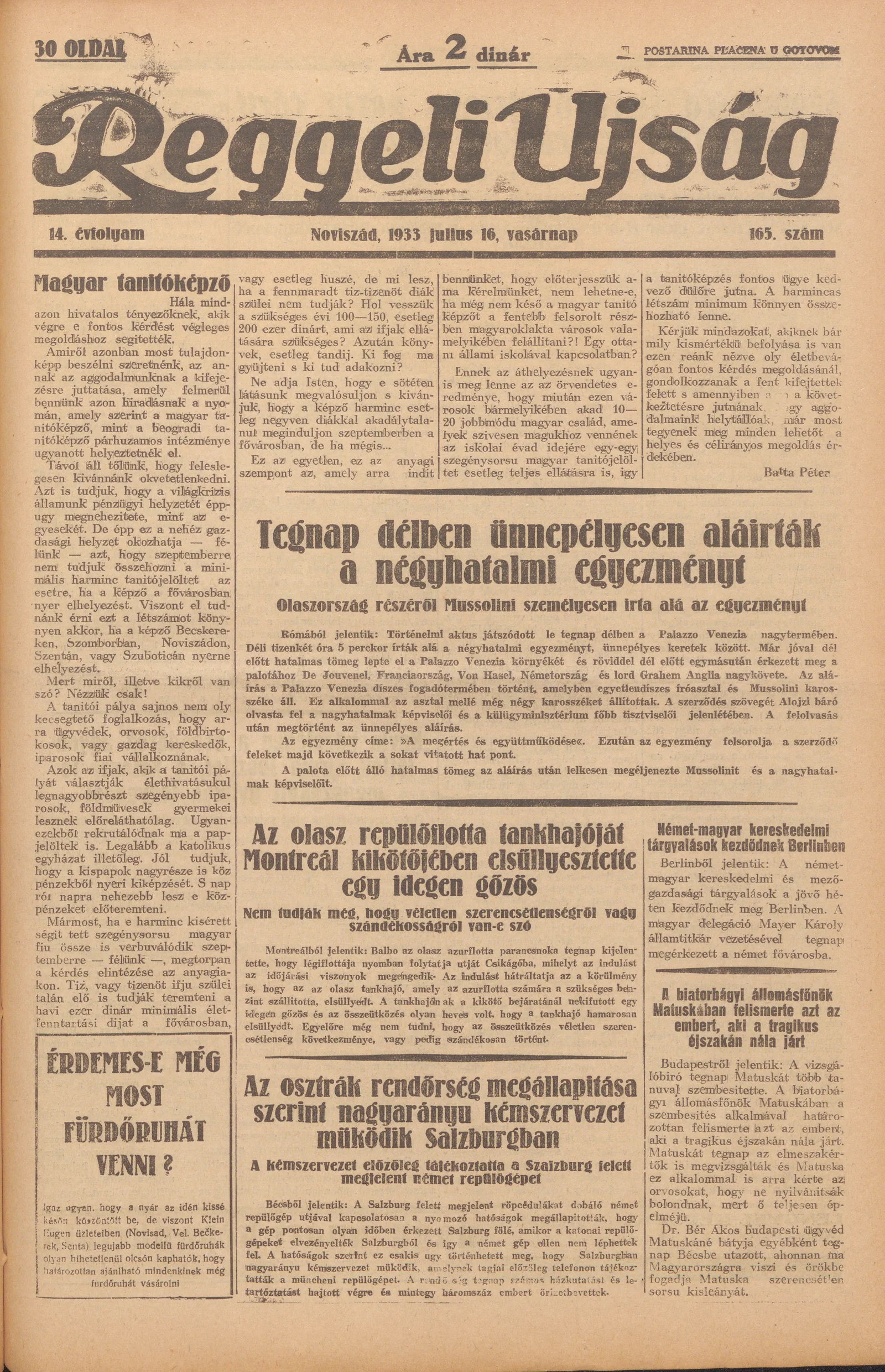 Reggeli Újság, 14. évf. 1933. július 16. 165. sz.
