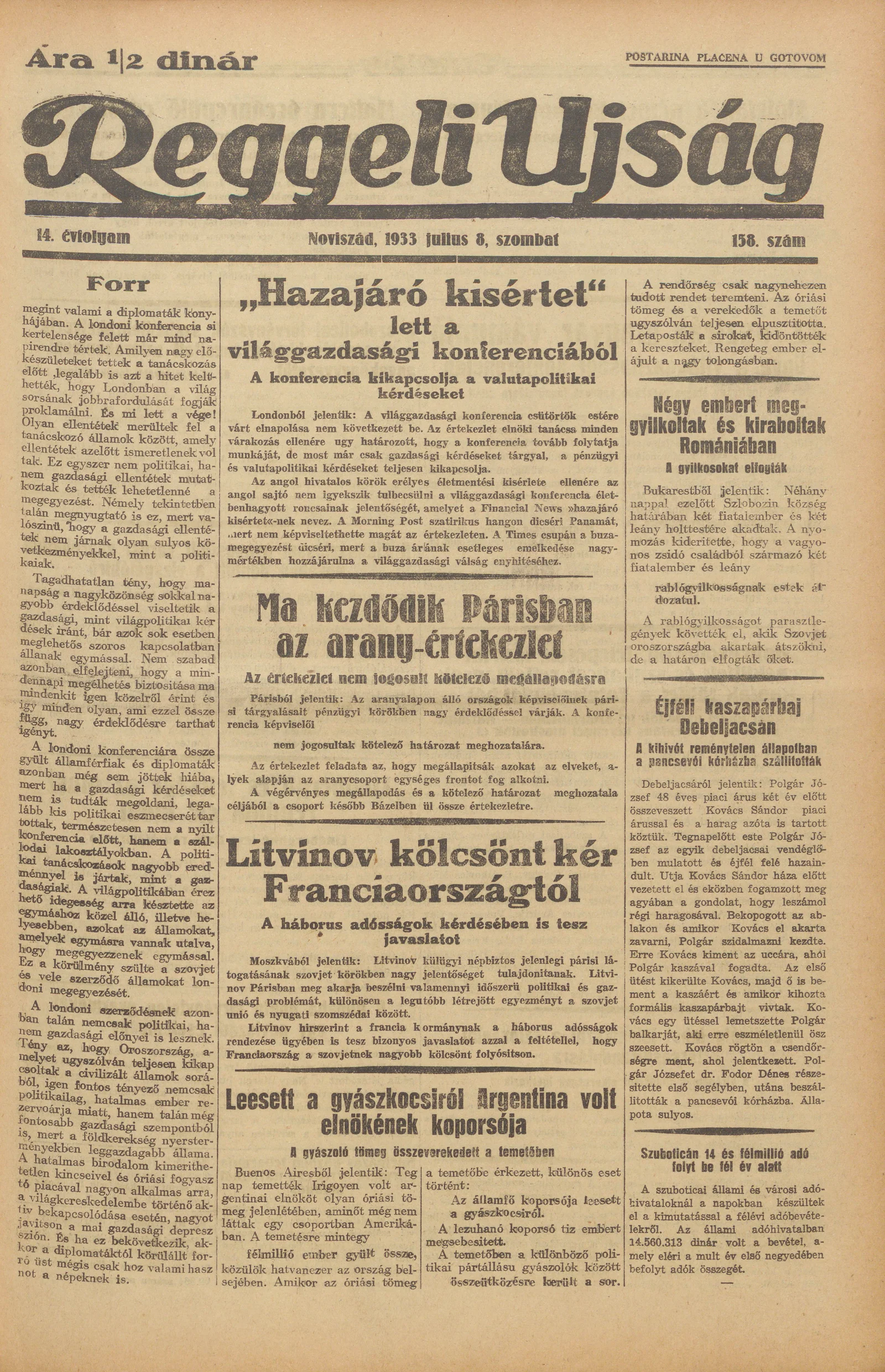 Reggeli Újság, 14. évf. 1933. július 8. 158. sz.