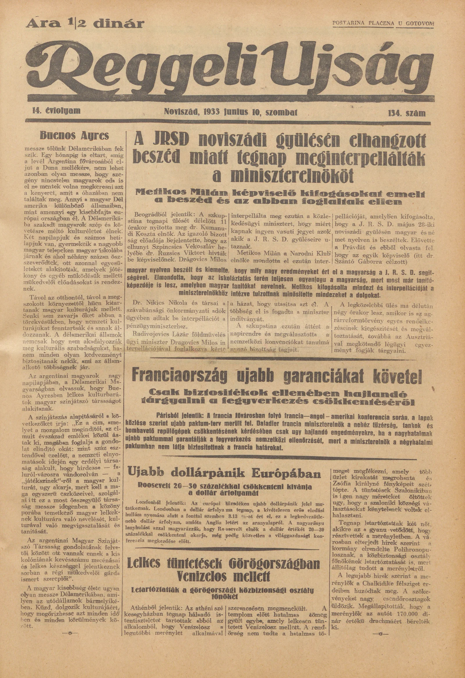 Reggeli Újság, 14. évf. 1933. június 10. 134. sz.
