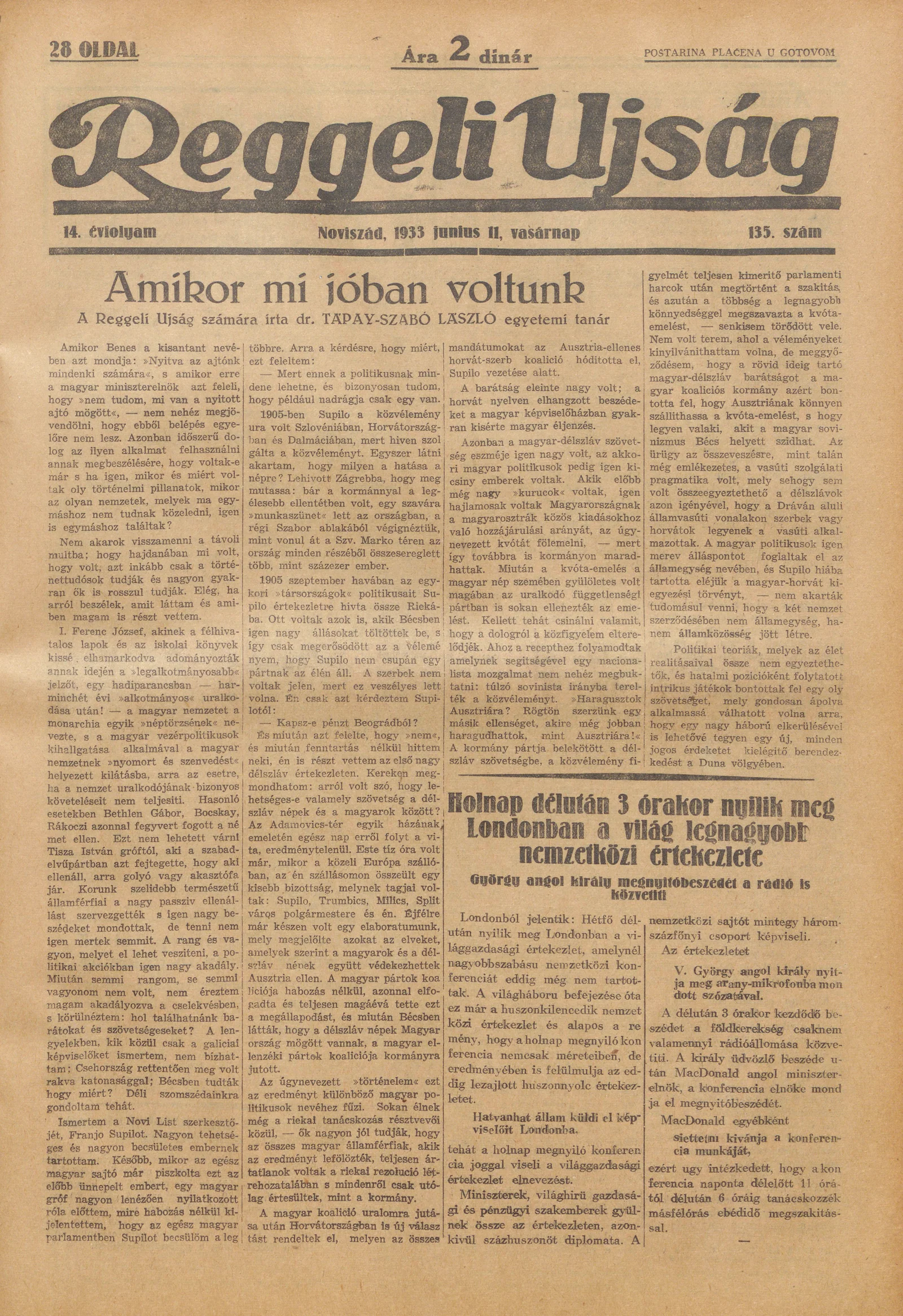 Reggeli Újság, 14. évf. 1933. június 11. 135. sz.