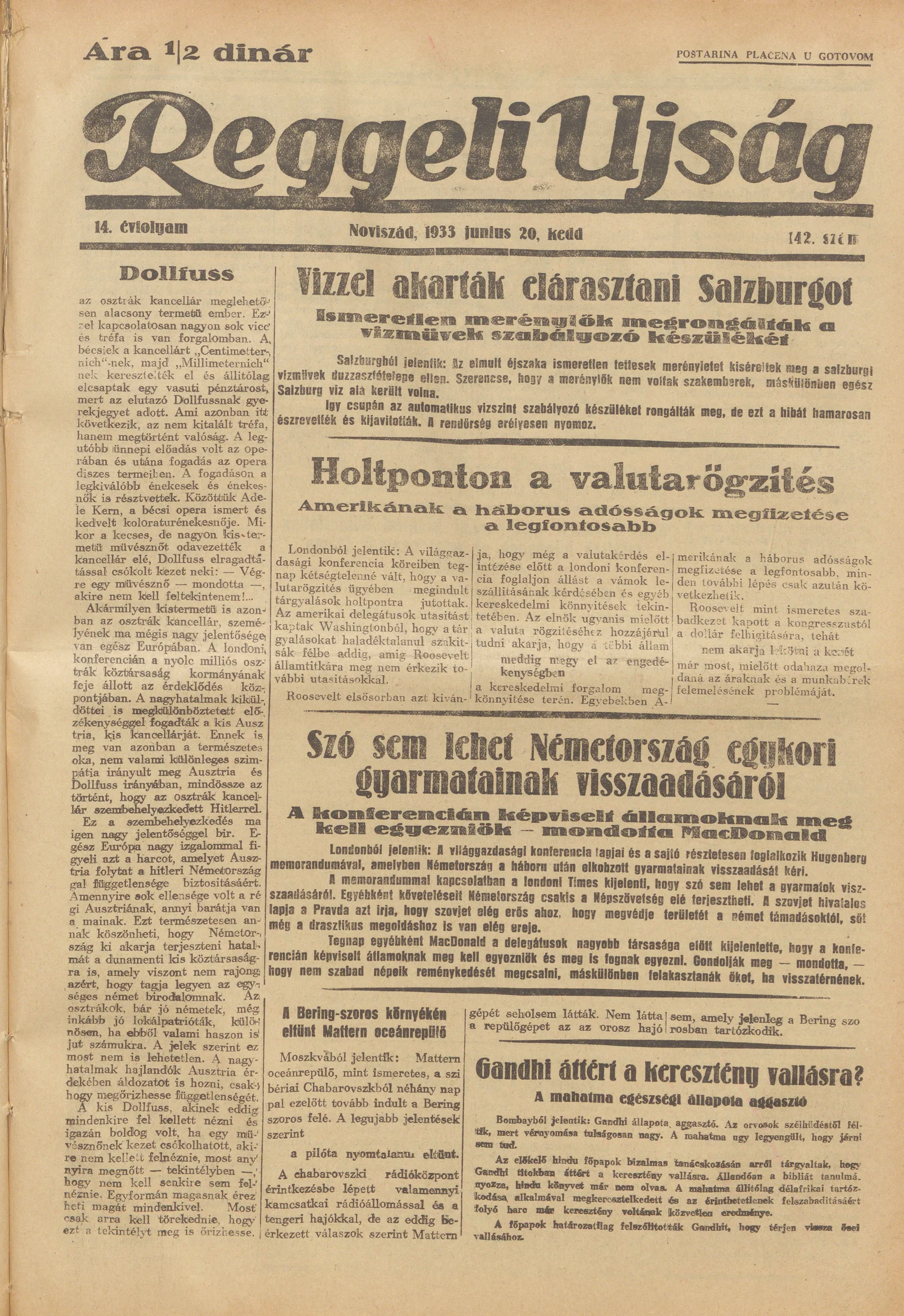 Reggeli Újság, 14. évf. 1933. június 20. 142. sz.