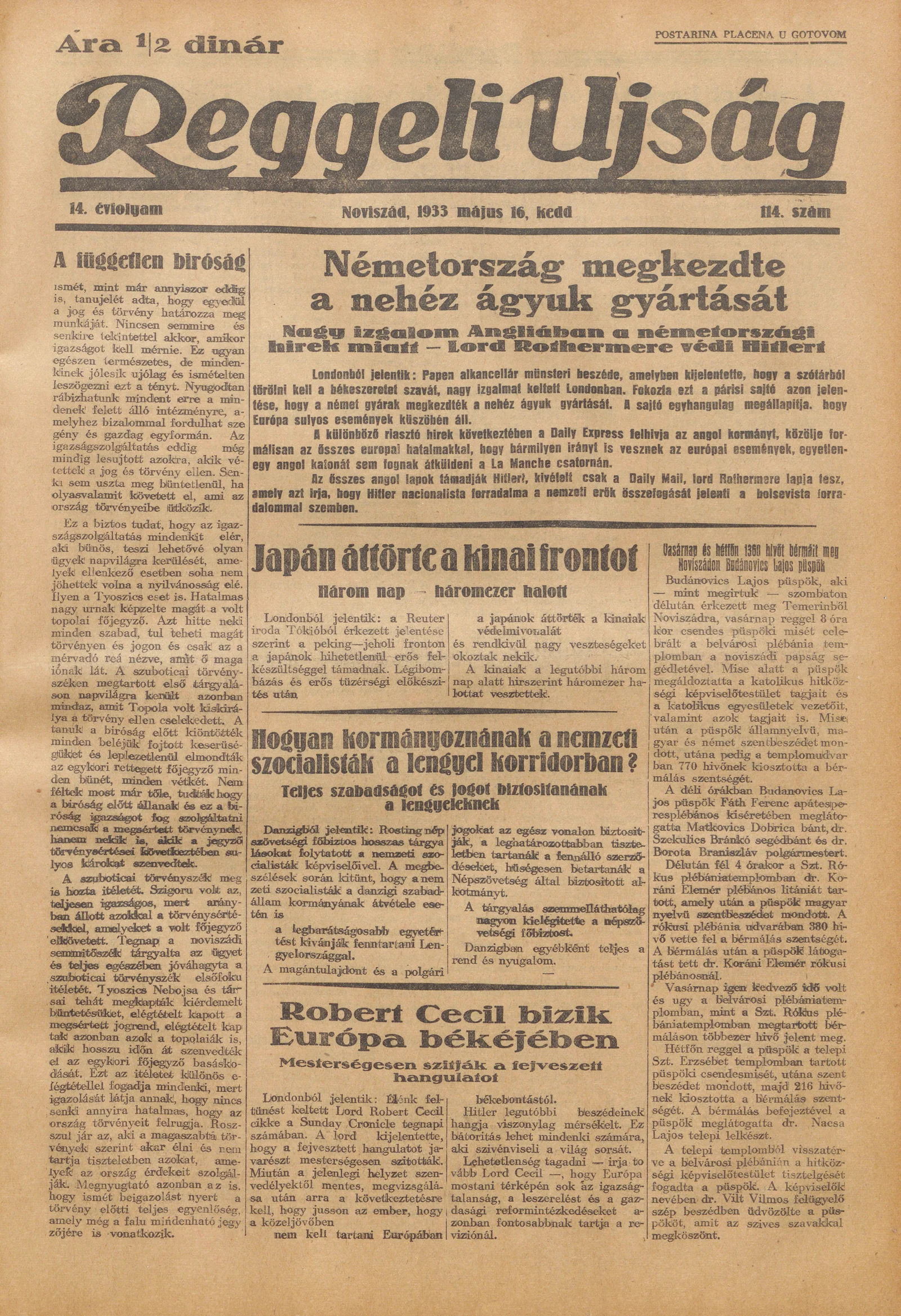 Reggeli Újság, 14. évf. 1933. május 16. 114. sz.