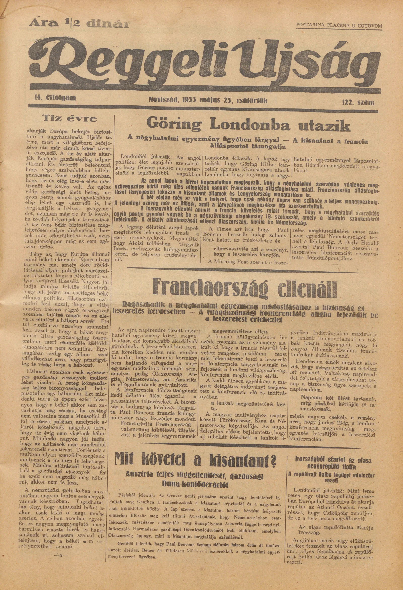 Reggeli Újság, 14. évf. 1933. május 25. 122. sz.