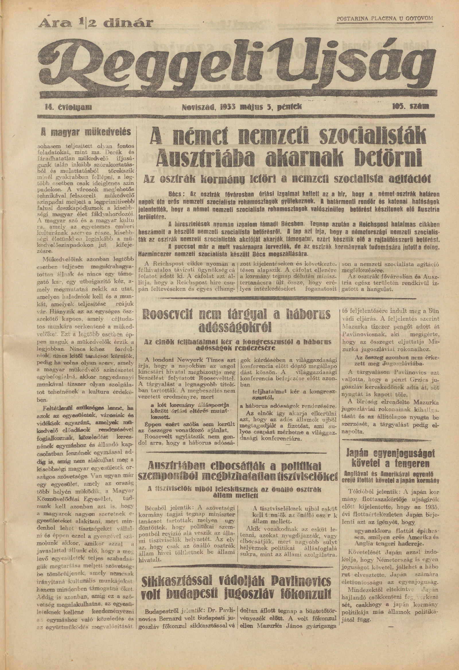 Reggeli Újság, 14. évf. 1933. május 5. 105. sz.
