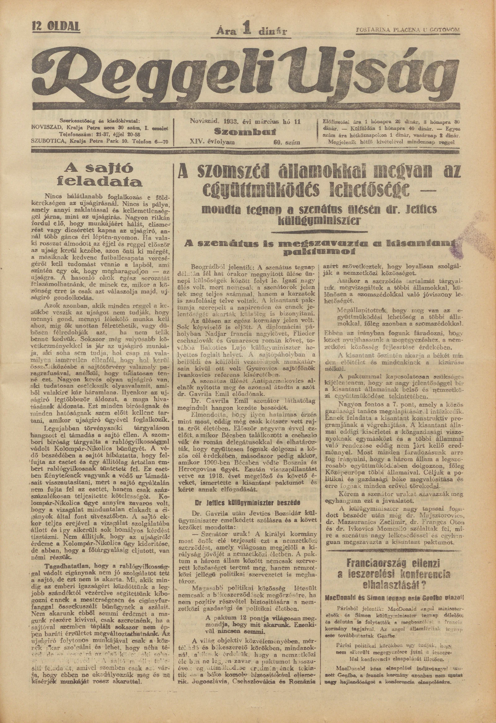 Reggeli Újság, 14. évf. 1933. március 11. 60. sz.