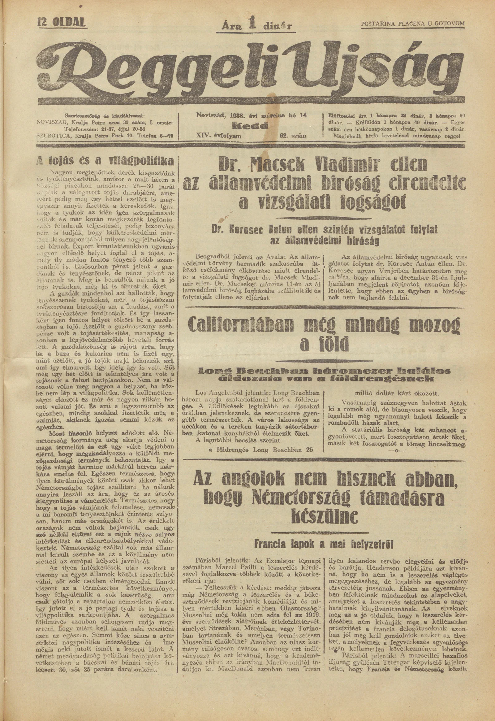 Reggeli Újság, 14. évf. 1933. március 14. 62. sz.
