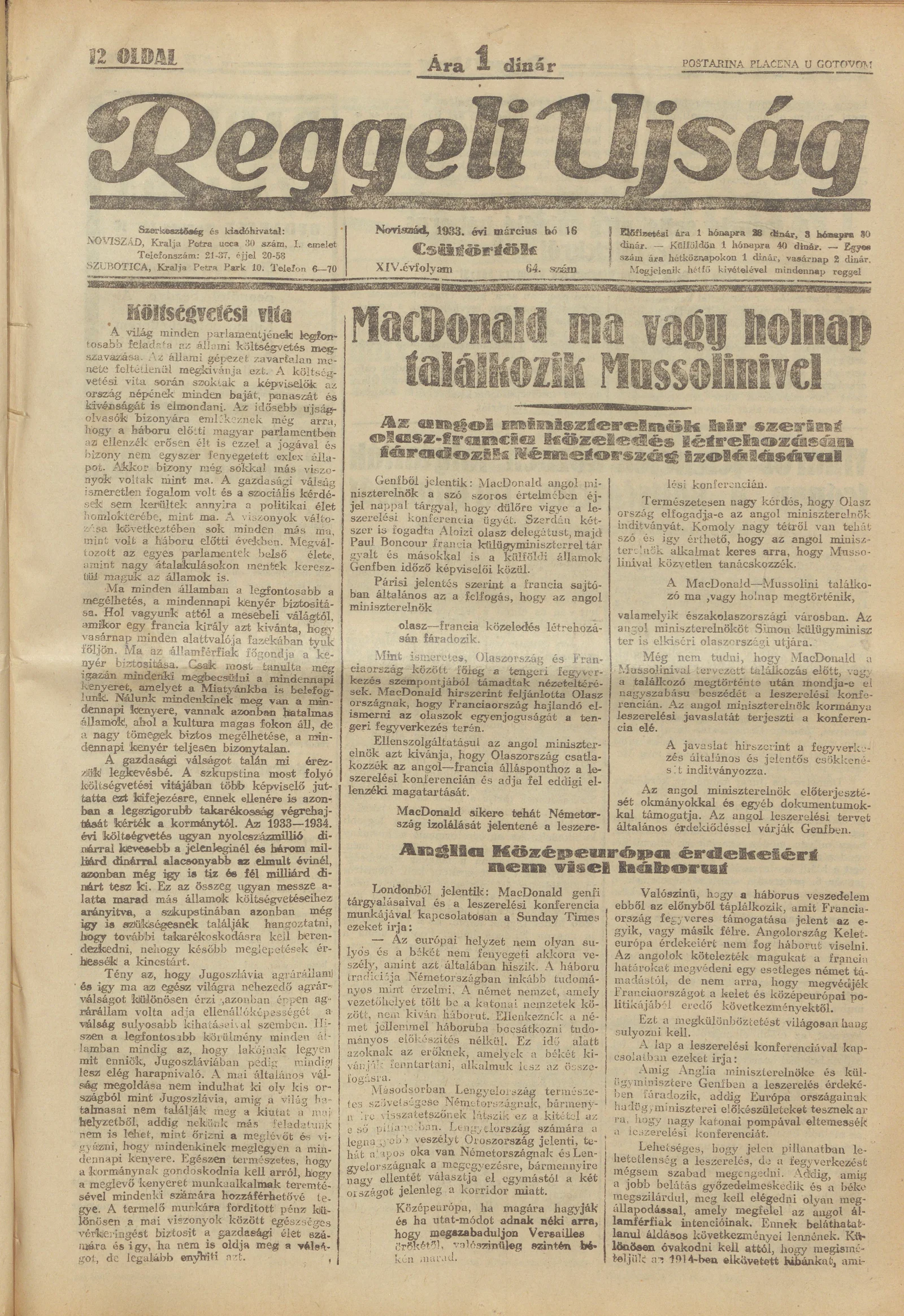 Reggeli Újság, 14. évf. 1933. március 16. 64. sz.