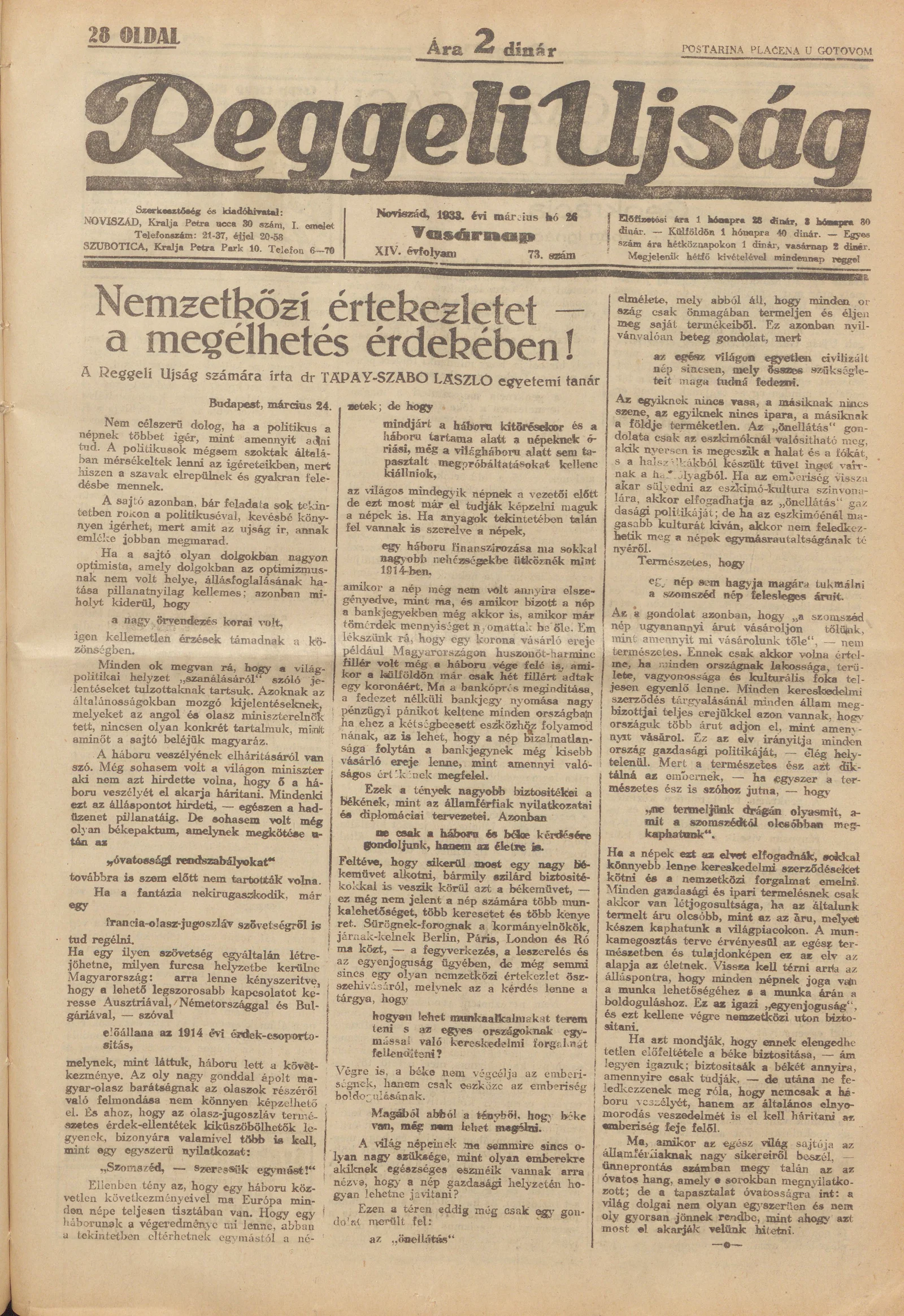 Reggeli Újság, 14. évf. 1933. március 26. 73. sz.