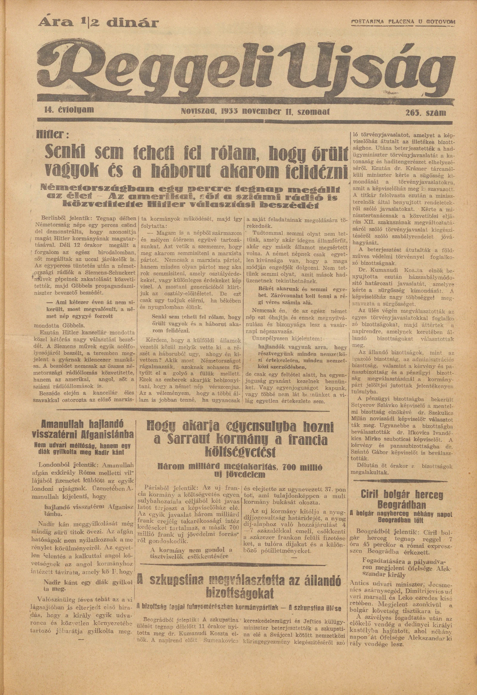 Reggeli Újság, 14. évf. 1933. november 11. 265. sz.