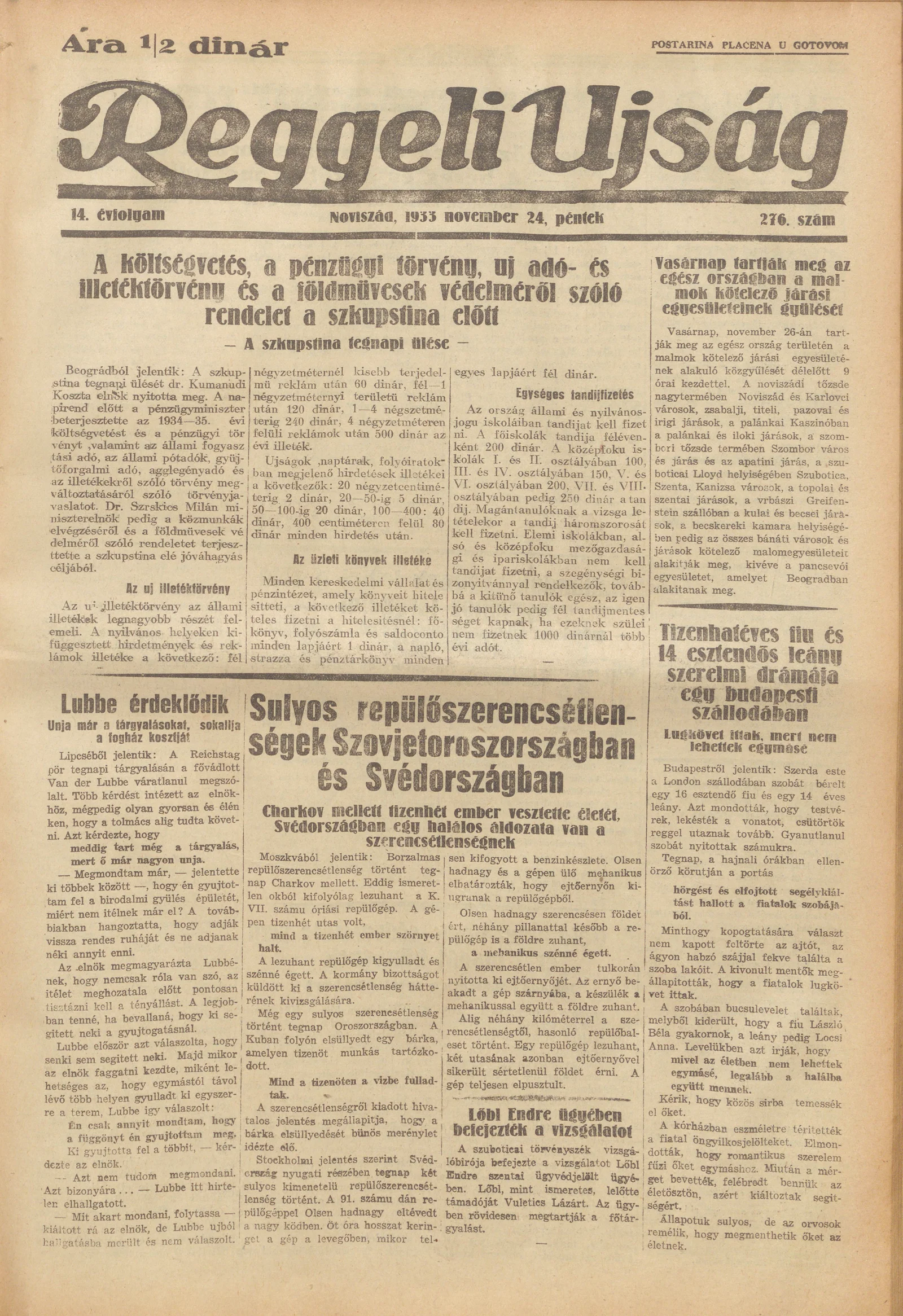 Reggeli Újság, 14. évf. 1933. november 24. 276. sz.