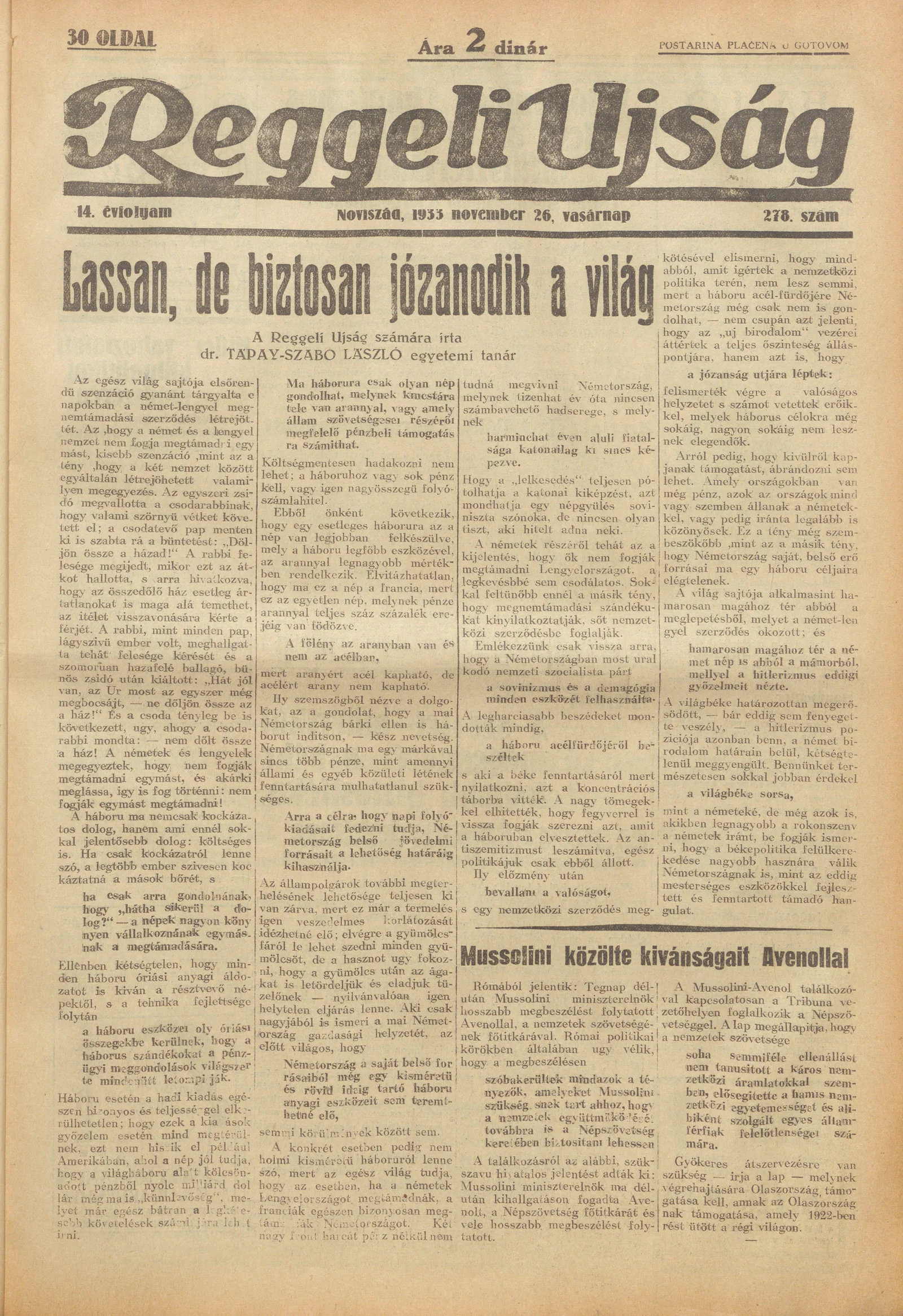 Reggeli Újság, 14. évf. 1933. november 26. 278. sz.