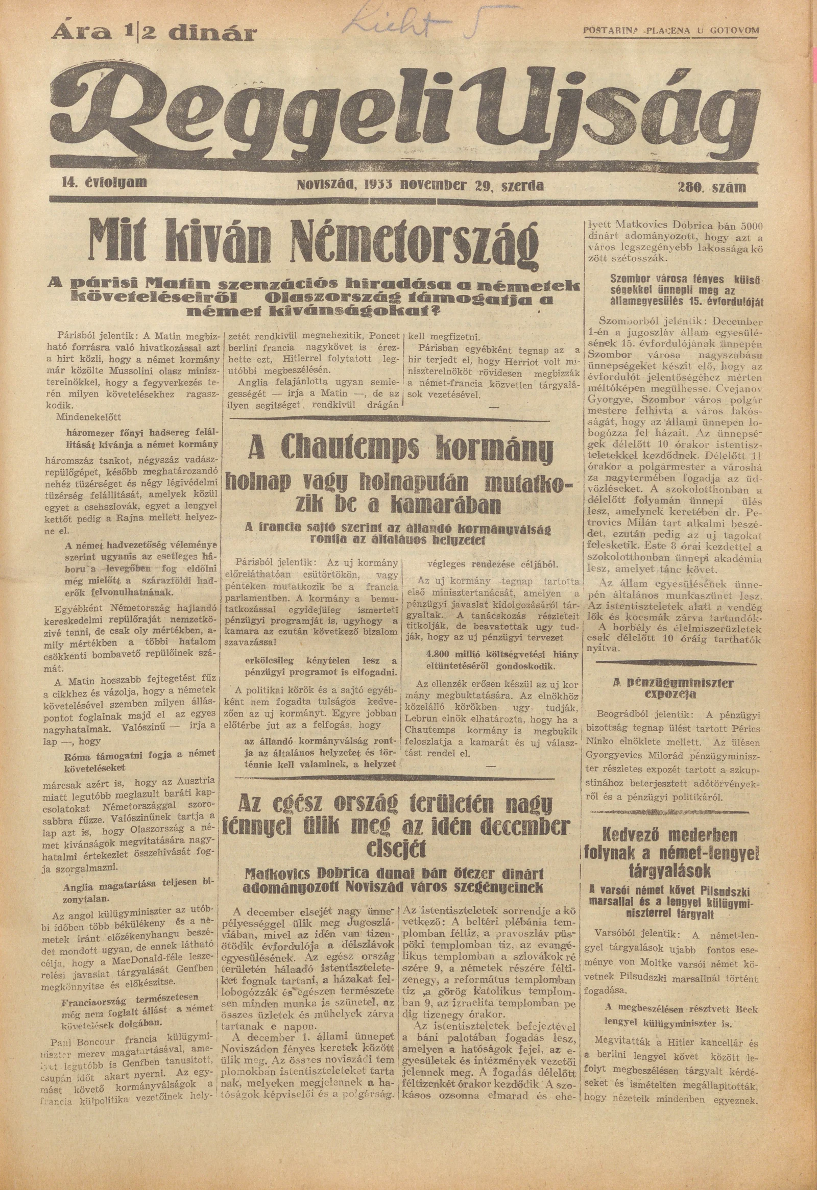 Reggeli Újság, 14. évf. 1933. november 29. 280. sz.