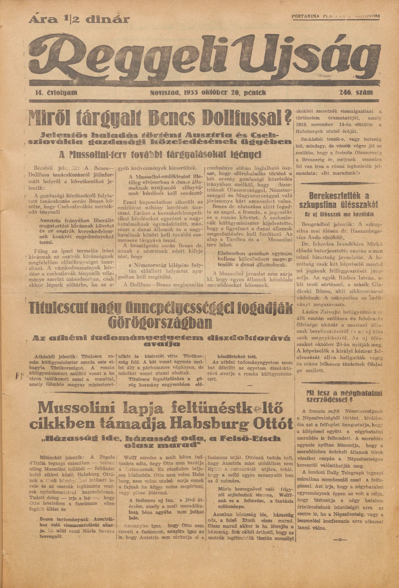 Reggeli Újság, 14. évf. 1933. október 20. 246. sz.
