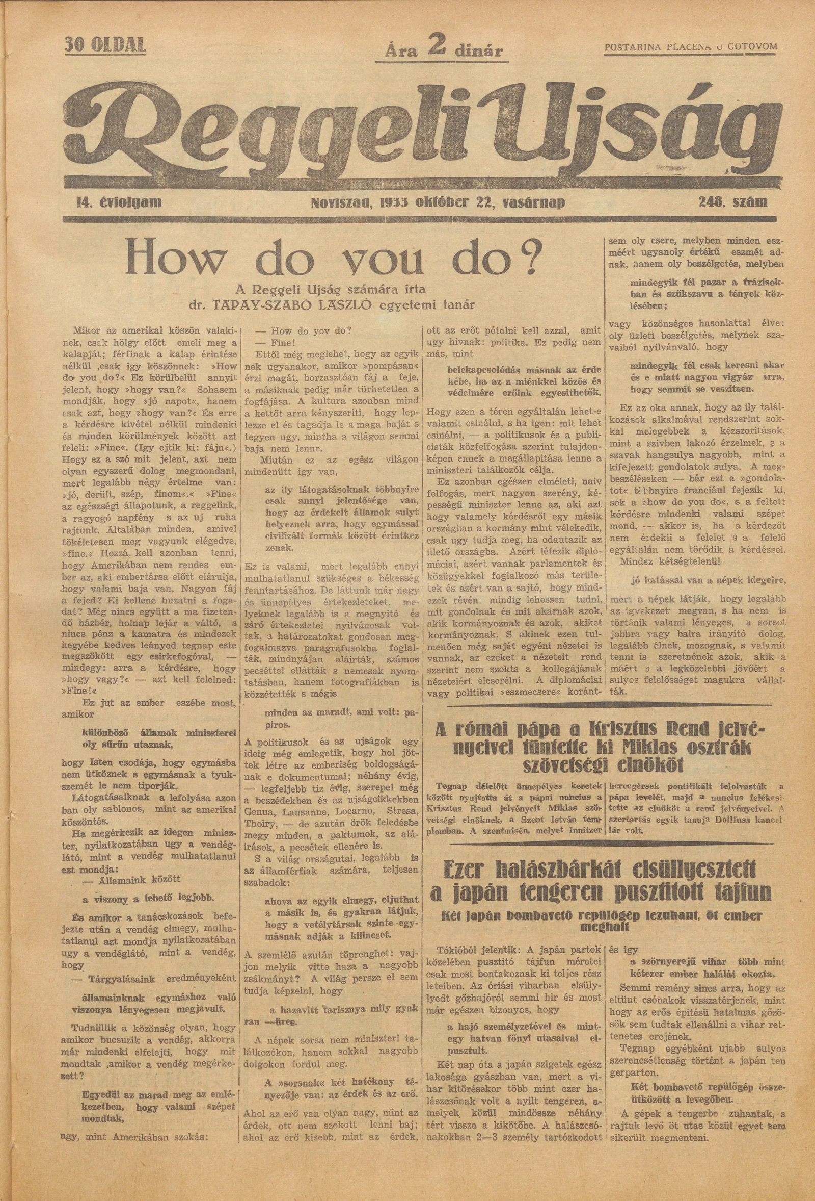 Reggeli Újság, 14. évf. 1933. október 22. 248. sz.