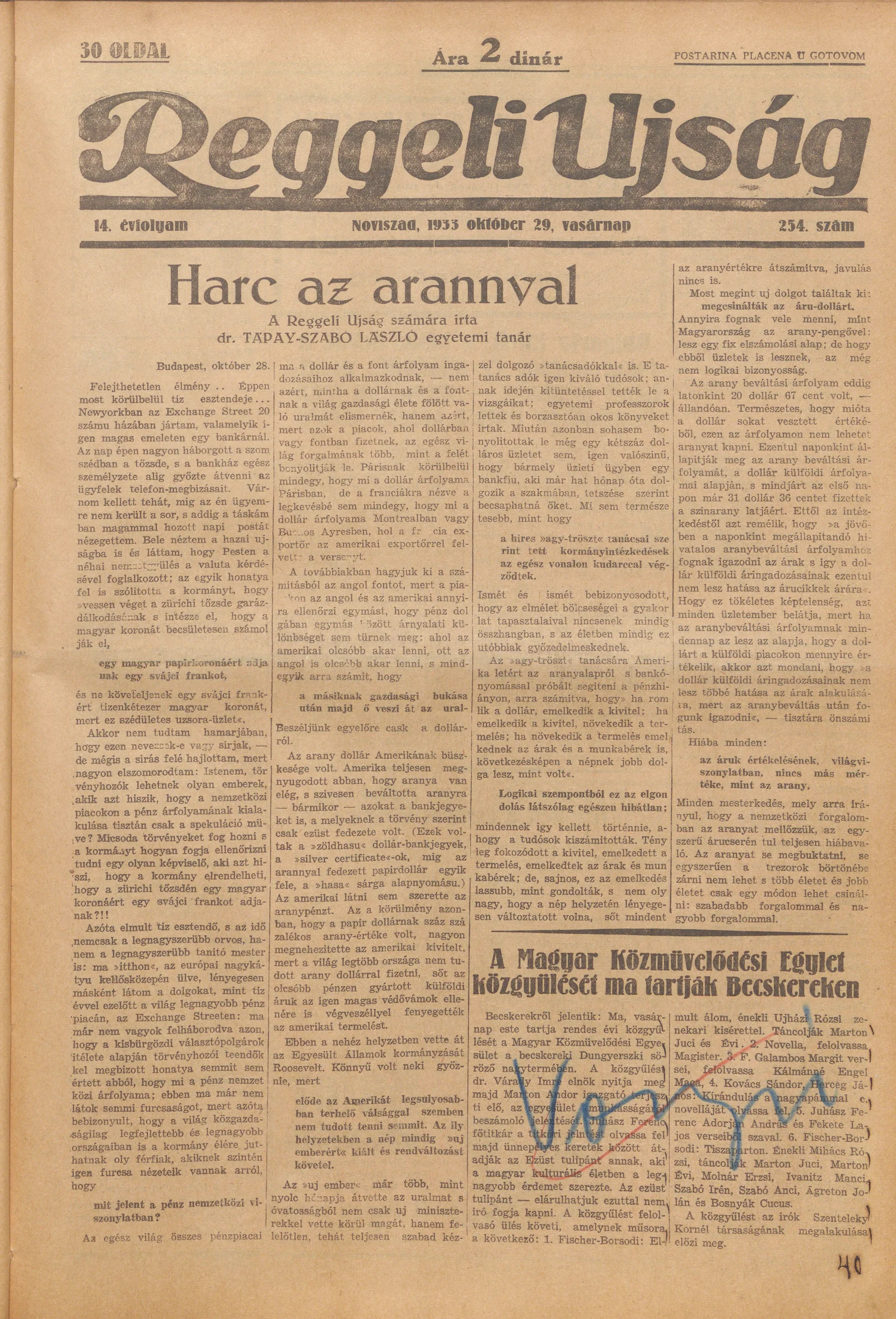 Reggeli Újság, 14. évf. 1933. október 29. 254. sz.